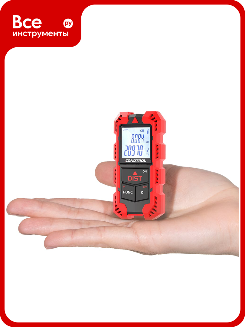 **Дальномер лазерный Condtrol Traccer30** — это компактное измерительное устройство, предназначенное для определения расстояния до объекта. Он оснащен лазерным излучателем и имеет максимальную дальность измерения 30 метров. Прибор также имеет функцию непрерывного измерения, что позволяет определить расстояние до движущегося объекта.