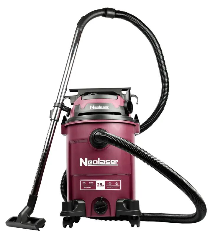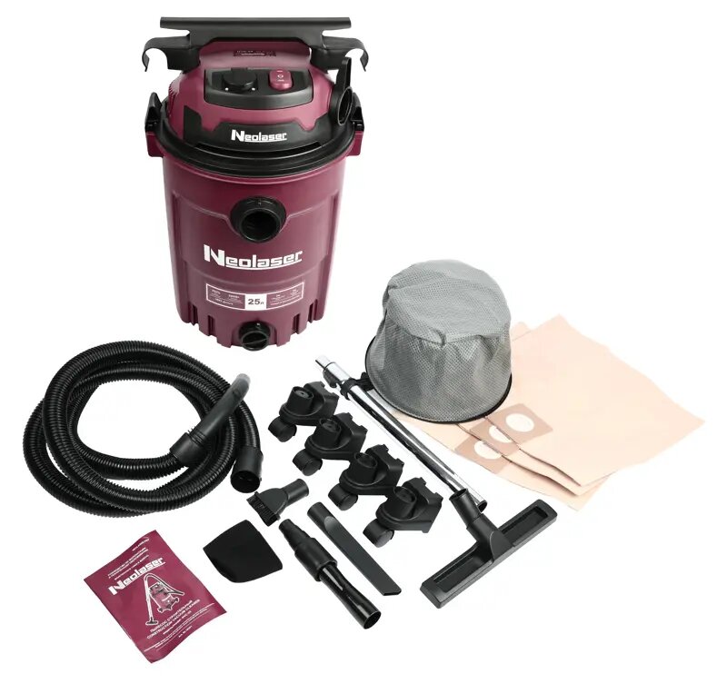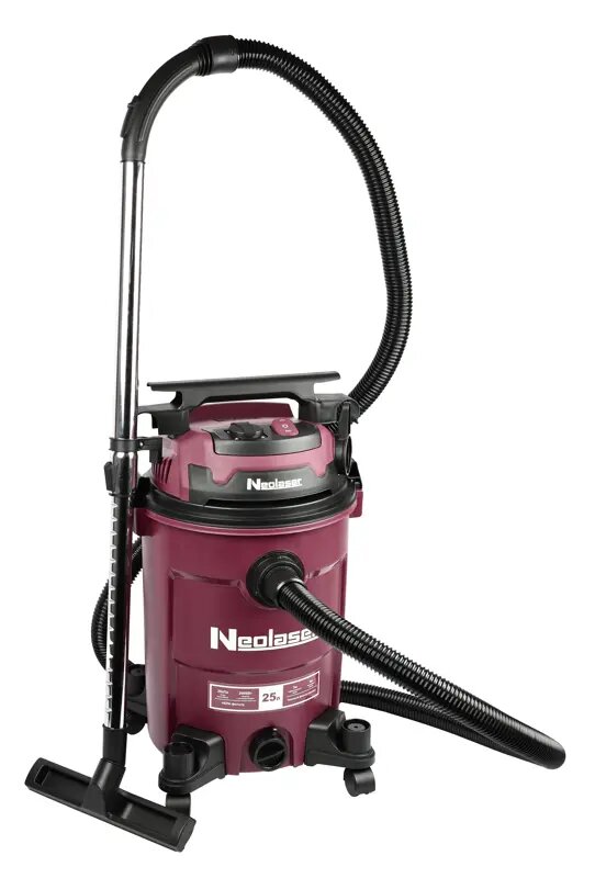 **Cетевой строительный пылесос Neolaser NVC-25** предназначен для сухой уборки лёгких фракций различного строительного мусора, а также сбора воды с поверхности пола.