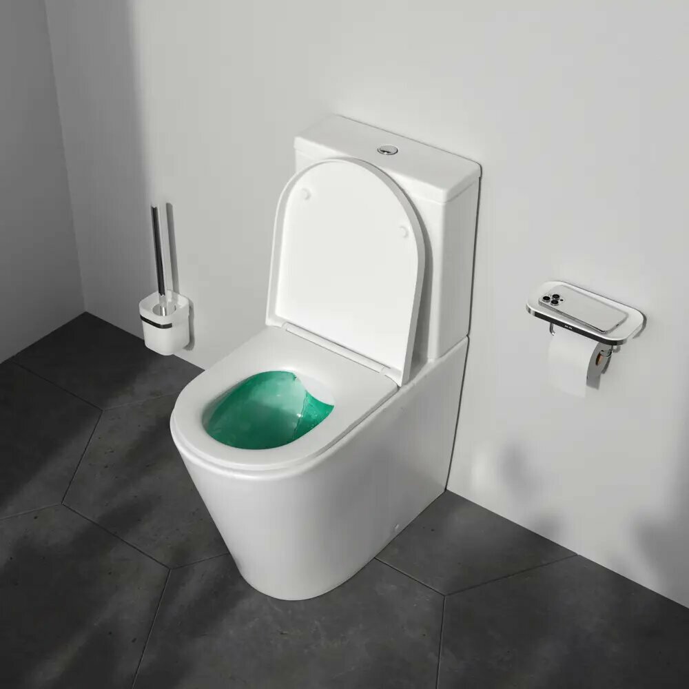 **Унитаз-компакт AM.PM Drive C9H8600LMSC** — это безободковый унитаз с двойным сливом. Чаша без ободка не накапливает грязь и бактерии, проста в уходе. Двойная система смыва дает возможность выбрать между полным и половинным сливом воды, что позволяет экономить воду. Антибактериальное покрытие обеспечивает надежную защиту от размножения бактерий на поверхности унитаза. Система антивсплеск предотвращает разбрызгивание воды при смыве, что поддерживает чистоту в туалете. Этот унитаз изготовлен из санфарфора, имеет овальную форму чаши и дюропластовое белое, квадратное сиденье.