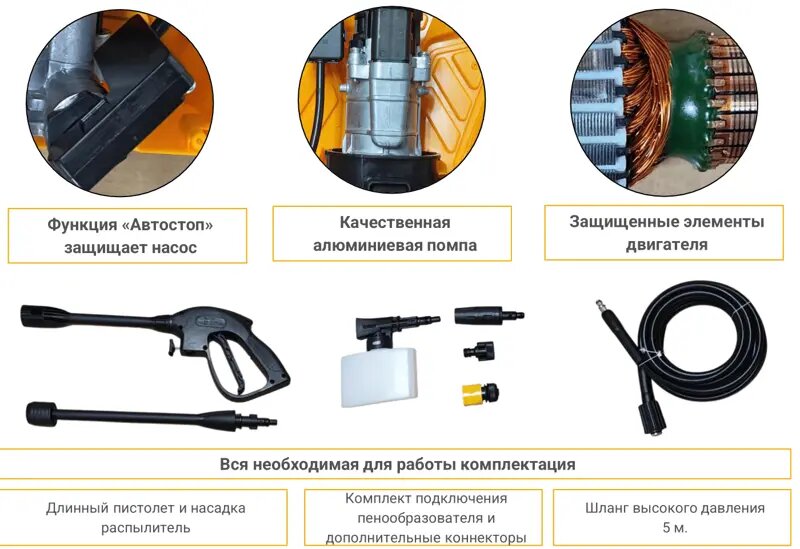 | Аксессуары в комплекте | Ручка - 1 шт Шланг высокого давления - 1 шт Высоконапорный шланг - 1 шт Распылительная трубка - 1 шт Держатель кабеля - 1 шт Держатель пистолета - 1 шт Крюк-держатель шланга - 1 шт Емкость для моющего средства - 1 шт Насадка-распылитель - 1 шт Быстроразъемное соединение - 1 шт Коннектор для шланга - 1 шт Крепежный комплект - 1 шт Игла для прочистки распыляющего наконечника - 1 шт Руководство по эксплуатации - 1 шт |