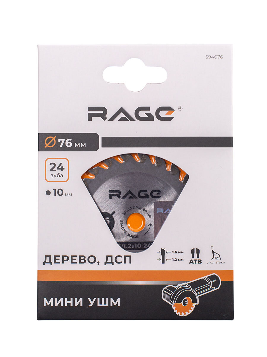 **Диск пильный Rage 594505 100Т** предназначен для использования с ручной и торцовочной дисковой или циркулярной или распиловочным дисковым (циркулярным) станком. Он обеспечивает чистый и аккуратный рез благодаря трапециевидному типу зубьев с прямым зубом, следующим за ним. Диск изготовлен из прочной стали. Количество зубьев составляет 100, а толщина - 2 мм.