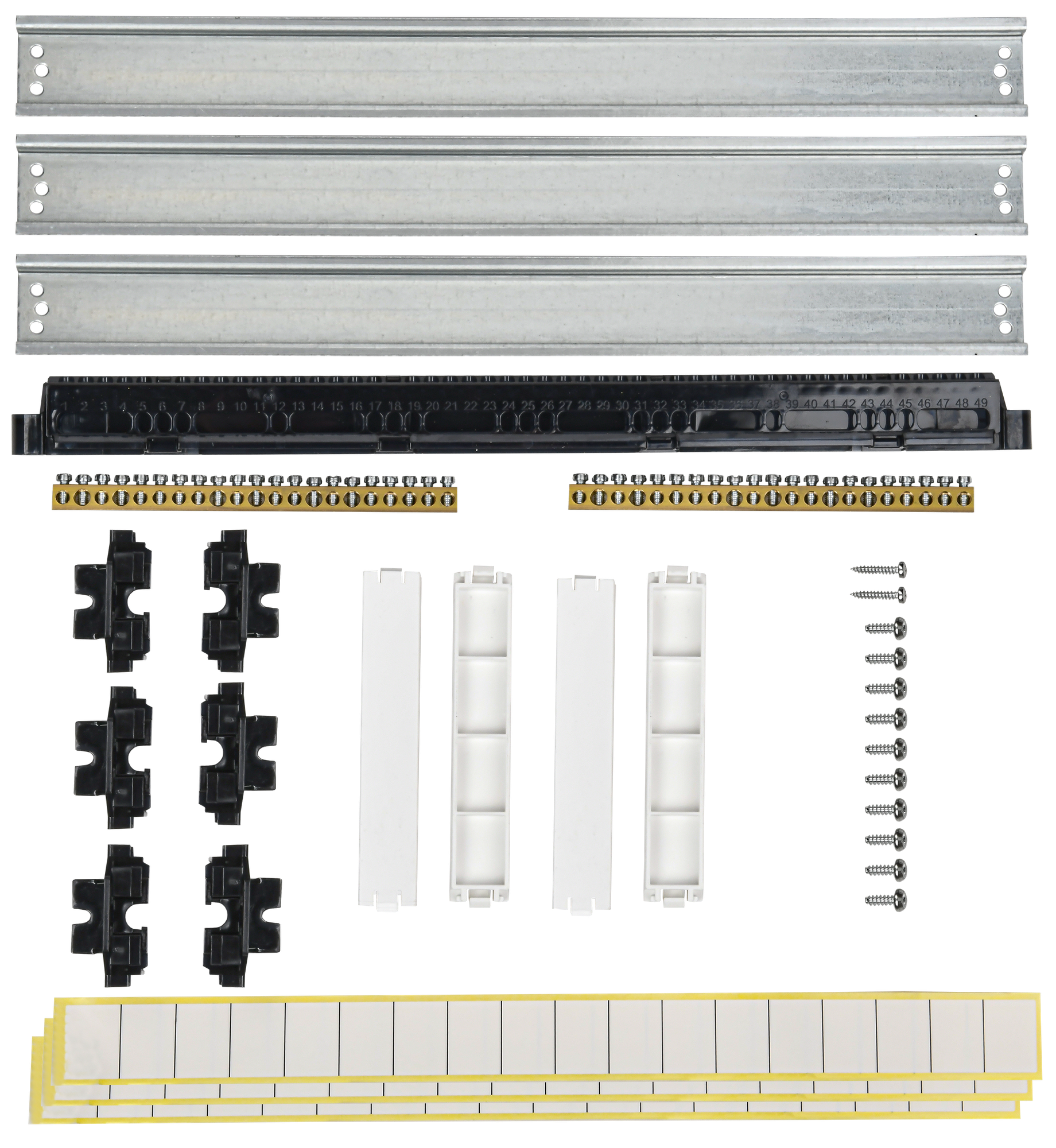 | Состав комплекта | DIN-рейка - 1 шт. Инструкция по сборке - 1 шт. Паспорт - 1 шт. Маркировочная лента - 1 шт. Шина 6х9мм, 5 отв. – 2 шт. Суппорт для шин - 1 шт. Кронштейн для DIN-рейки - 2 шт. |