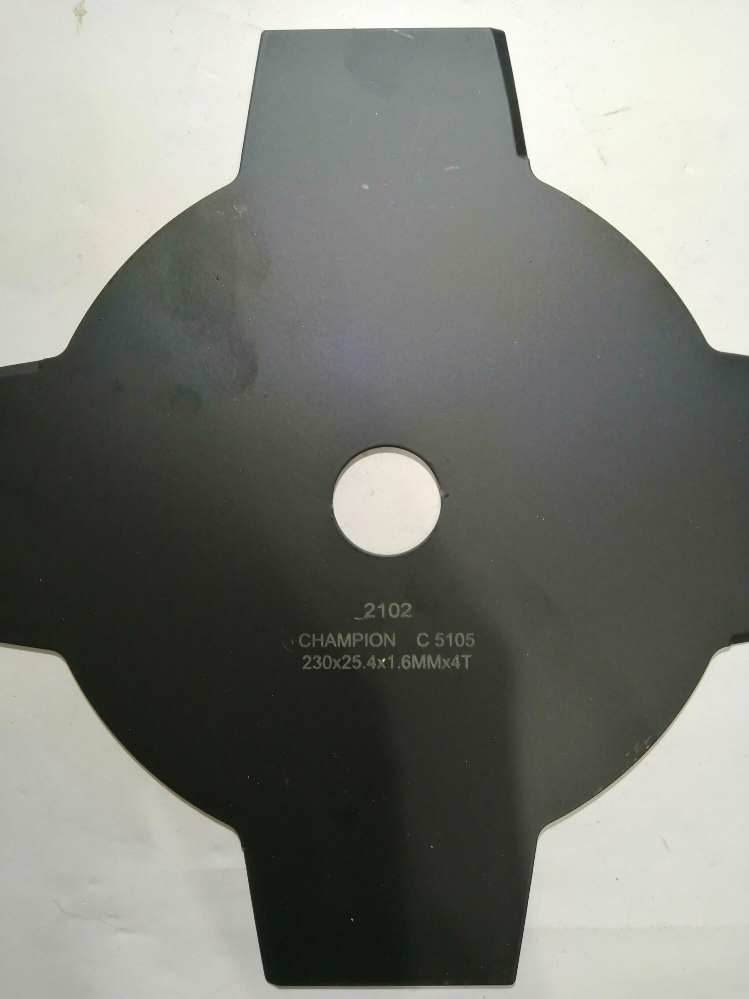Описание ножа для триммеров CHAMPION С5105Нож тип А CHAMPION /C755 подходит для триммеров 125R, 235R, FS55, 80, 85, 100, 120, FR85, 350, 450. Нож является режущим элементом и предназначен для кошения густой жесткой травы, толстых сорняков. Имеет двухстороннюю рабочую поверхность и 4 режущие лопасти.В отличие от ножей с 2мя или 3мя лопастями имеет большую скорость работы и лучшую производительность. После срезания трава выкладывается ровными рядами. Диск изготовлен из высокопрочной коррозионностойкой стали с длительным сроком эксплуатации. Необходимо следить за состоянием ножа и степенью заточки для качественной работы.
