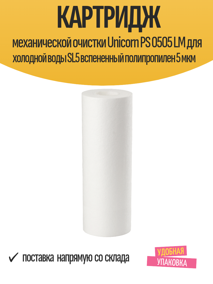 На сегодняшний день товар «Картридж механической очистки Unicorn PS 0505 LM для холодной воды SL5 вспененный полипропилен 5 мкм» можно купить с кешбеком в 1 магазине: Яндекс.Маркет