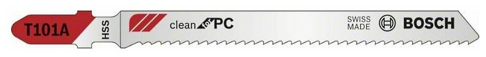 Лобзиковое пильное полотно T 101 A Clean for PC позволяет выполнять чистые прямые пропилы в пластмассе. Гладко шлифованные зубья и сужающаяся форма тела позволяют получить чистый пропил, а геометрия зубьев предупреждает плавление при резке листового поликарбоната. Кроме того, полностью закаленное полотно из высококачественной быстрорежущей стали подходит для пиления абразивных термопластичных пластмасс. Очень мелкий прогрессивынй шаг зубьев (2,0 мм) полотна позволяет пилить листовой пластик толщиной 2–20 мм. Для лобзиков с системами крепления с Т-образным хвостовиком.