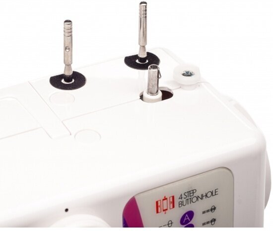 | Прочие особенности и свойства | Комплектация:вспарыватель швов, иглы, инструкция, лапка для вшивания молнии, лапка для петель, лапка универсальная, масленка, отвертки, педаль, чехол, шнур питания, шпульки,Дополнительно:освещение, реверс, регулировка длины стежка, регулятор натяжения нити |