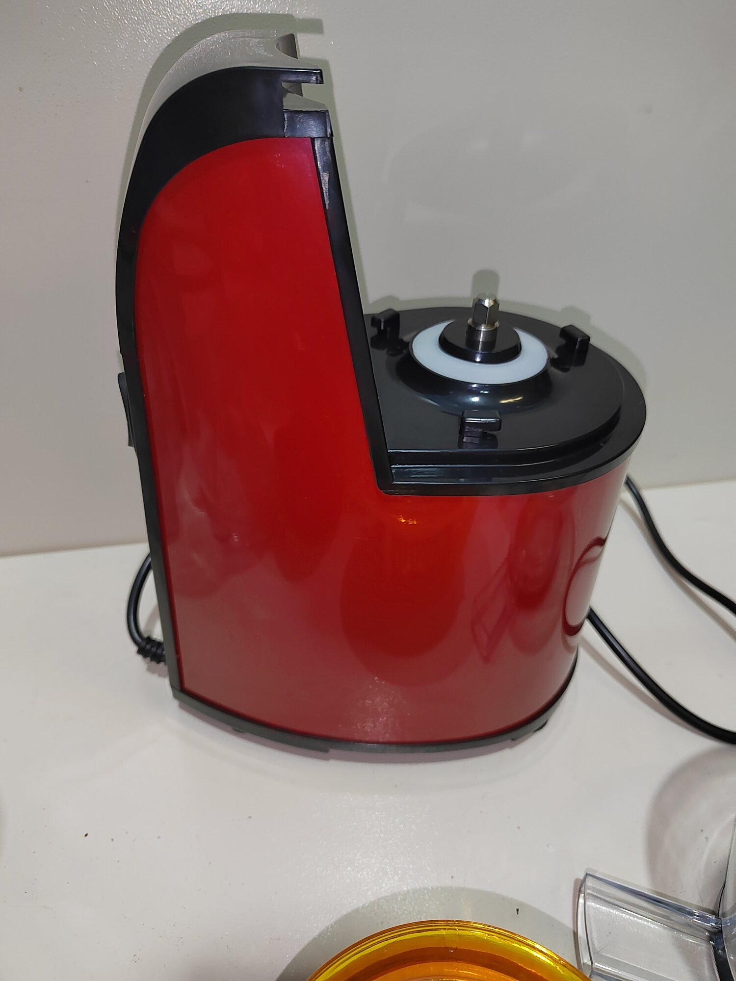 - Невысокая цена (в сравнении с другими шнековыми), тихая, красивая (брали оранжевую), полезный сок (из-за всего 80 оборотов в минуту сок не окисляется, сохраняются витамины), широкое загрузочное горлышко (очень удобно летом, если много яблок, не нужно резать на мелкие кусочки).