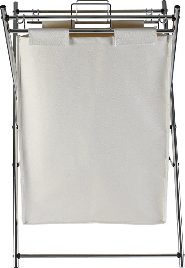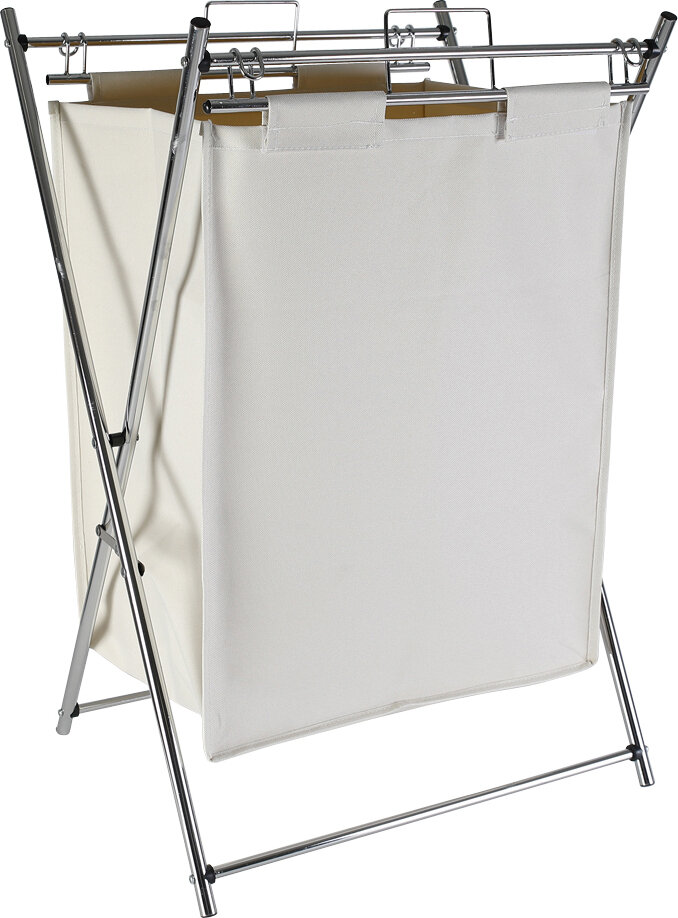 Складная корзина для белья Axentia представляет собой прочную раму из качественной хромированной стали с двумя ручками для переноса и съемного мешка из хлопка большой вместительности.