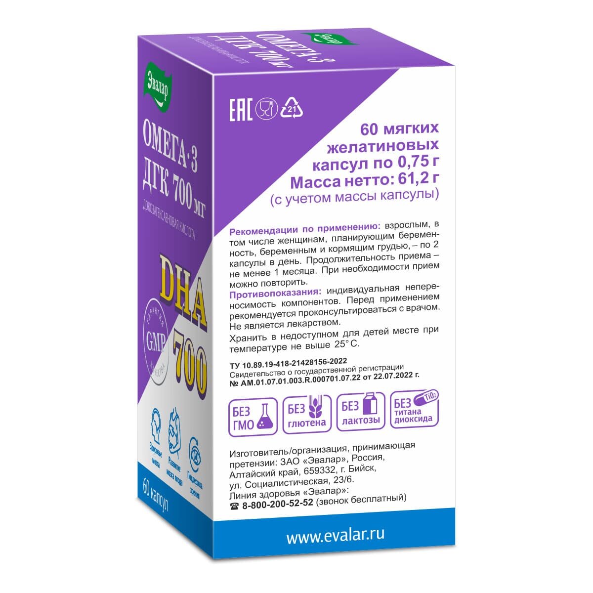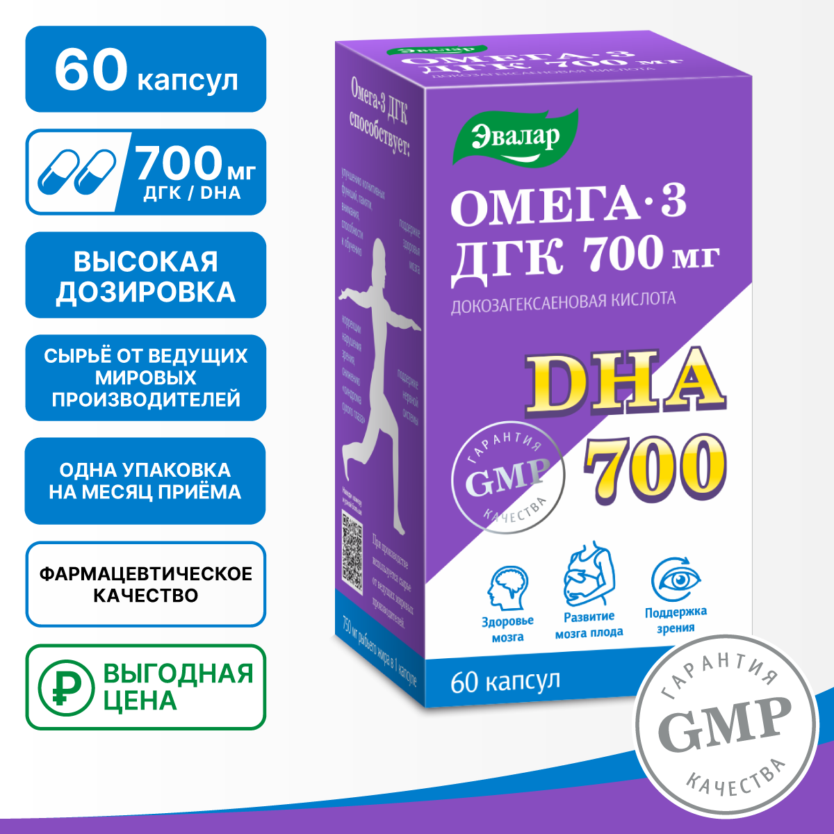 Омега-3 ДГК 700 мг Эвалар 60 капсул Белый (EV4602242026129OKBOE2Y-60) (размер: One size)