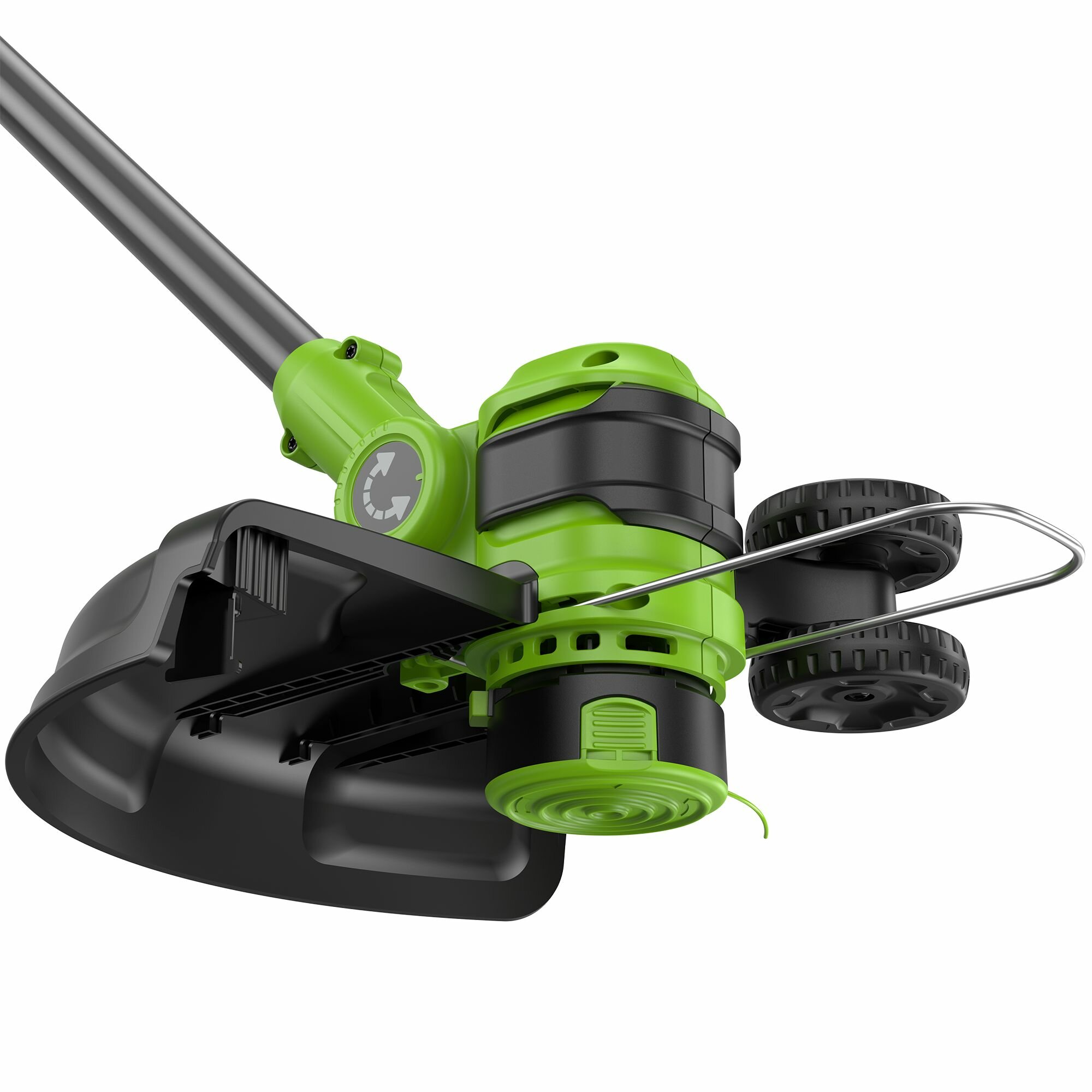 Триммер аккумуляторный Greenworks G40LT331, 40V, 33 см, с 1хАКБ 4Ач и ЗУ (2113507UB) — легкий и достаточно мощный - отличная замена электрическому инструменту. Устройство 2 в 1 – садовый триммер и кромкорез.Преимущества Триммер Greenworks легко справляется с любыми задачами: скашивает траву и сорняки на ширину 33 см с леской или 25 см с ножами В комплекте идут 20 пластиковых ножей, что хватит надолго Мощный двигатель с 9000 об/мин обеспечивает быструю и чистую работу как с леской, так и с ножами Инструмент позволяет работать с удобством благодаря 7-позиционной регулировке угла наклона режущей части Нижнее расположение двигателя улучшает баланс и снижает нагрузку на руки, делая работу легче и приятнее Регулируемая D-образная ручка с изменяемым углом наклона позволяет подстроить инструмент под индивидуальные предпочтения Телескопическая алюминиевая штанга позволяет регулировать длину под рост оператора