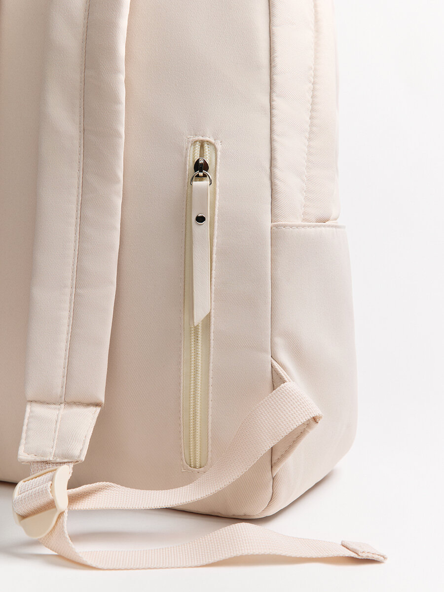- Женский рюкзак среднего объема из плотной ткани с гладкой текстильной фактурой