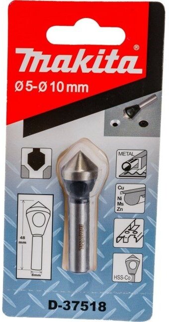 Предназначен для зенкования в металле и дереве. С наклонным отверстием конического наконечника, благодаря чему, отходы при зенкировании выходят без затруднения. Позволяет делать гладкие и округлые отверстия в деревянных и металлических заготовках, включая тонкие листовые металлы.