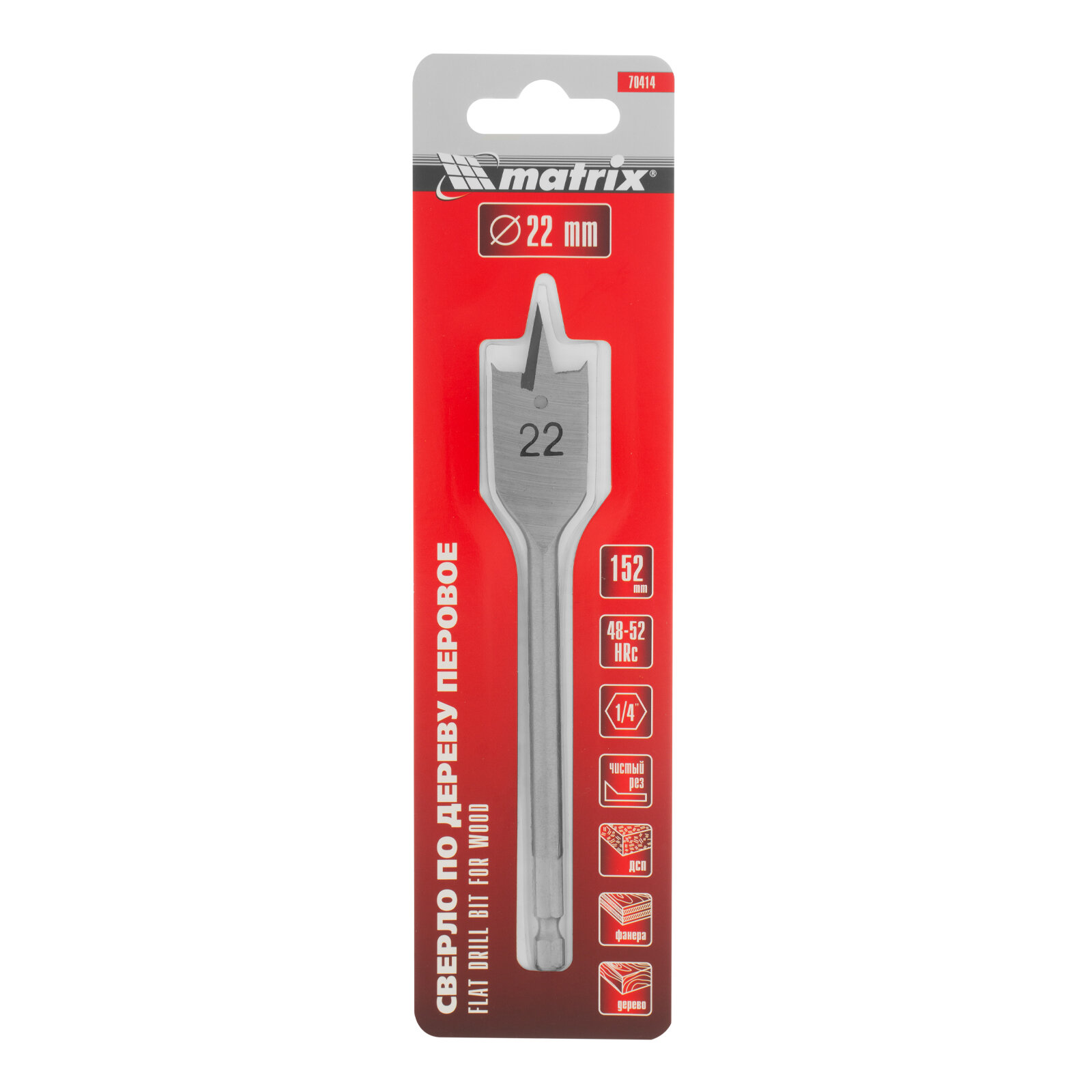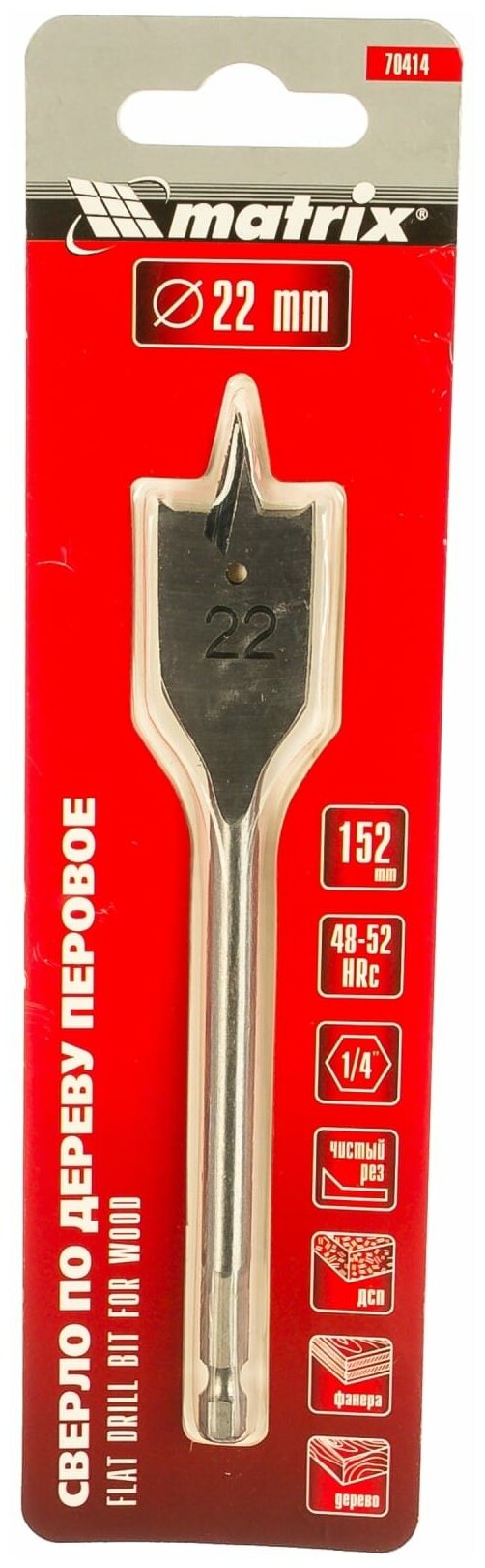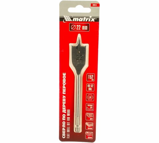 Сверло по дереву MATRIX перовое 22мм 6гранный хвостовик