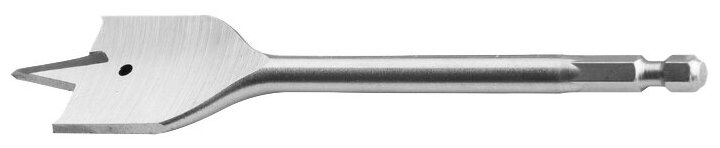 | Прочие особенности и свойства | Сверло перовое изготовлено из углеродистой стали. Твердость режущих кромок 45–54 HRС. Может использоваться с ручной механической и электрической дрелями, а также сверлильными станками. Имеет плечевое заострение. Хвостовик шестигранной формы предотвращает проворот сверла в патроне. Сверла от 16 до 40 мм могут использоваться с удлинителем 70495. Сверло перовое предназначено для получения отверстий в мягкой и твердой древесине с любым расположением волокон, клееной фанере, ДСП. |