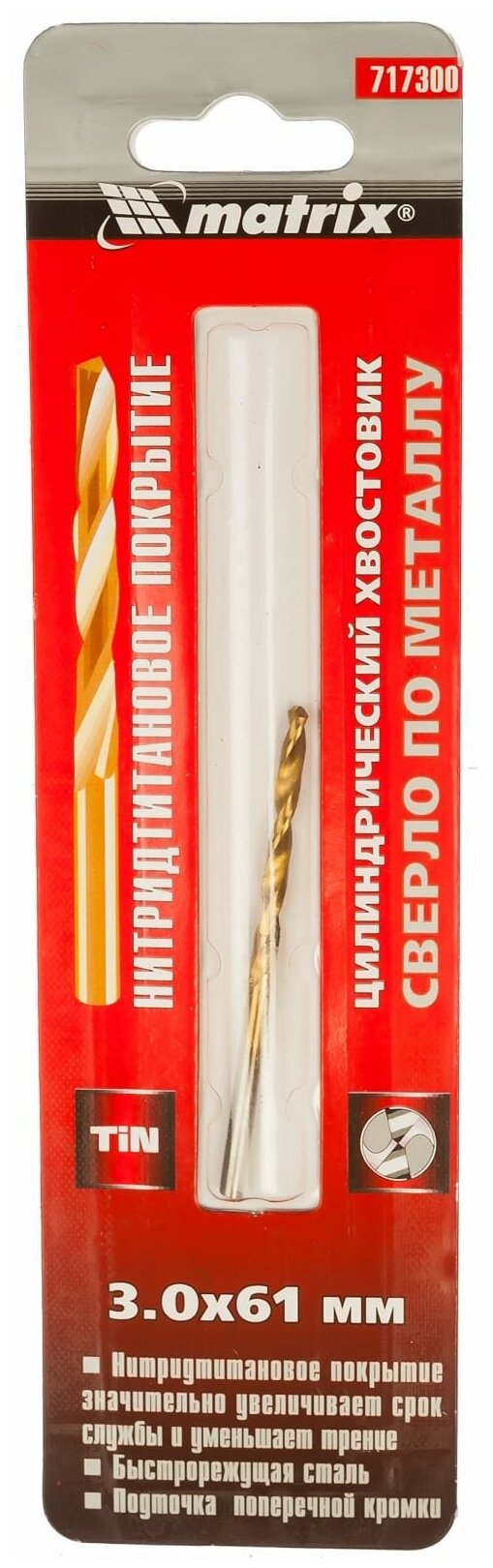 | Прочие особенности и свойства | Изготовлено из инструментальной легированной стали., Поверхность сверла из титаносодержащего сплава, что значительно повышает эксплуатационные характеристики сверл по металлу., Покрытие из нитрида титана увеличивает стойкость инструмента в 2–2,5 раза. |