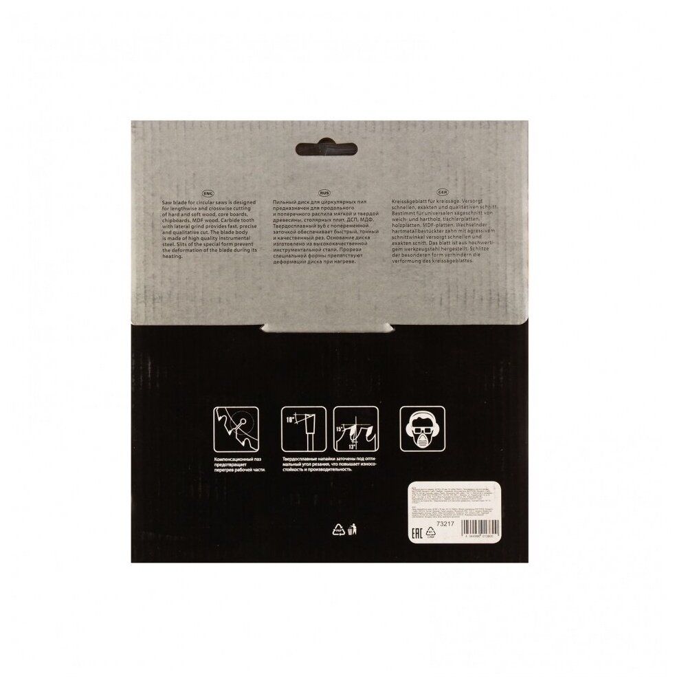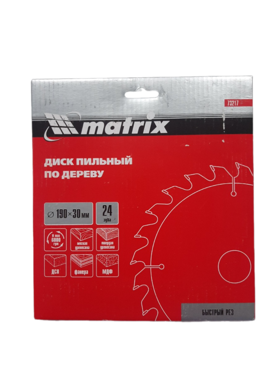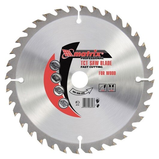 Пильный диск MATRIX Professional произведен с помощью специальная схемы заточки твердосплавных зубьев (ВК4), что позволяет производить качественную распиловку древесины. Компенсационные прорези уменьшают колебания, подавляют шумы и препятствуют изгибанию диска при нагреве.
