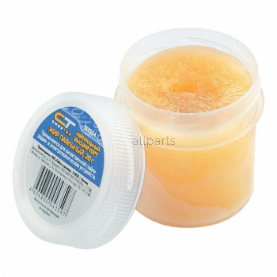Паяльный жир Сибртех , поставляющийся в банке объемом 20 г, — нейтральный флюс для пайки проводов и компонентов радиоэлектронной аппаратуры. Используется также для лужения жала паяльника. Жир эффективно удаляет окислы в месте пайки и обеспечивает прочность соединения, а после окончания работы легко смывается. Пригодится для ремонта электроники.