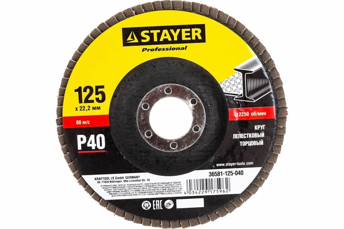 Сервис сравнения цен СкидкаГИД предлагает сравнить цены на товар «Круг Лепестковый Торцевой (КЛТ) Stayer Profi 36581-125-040»