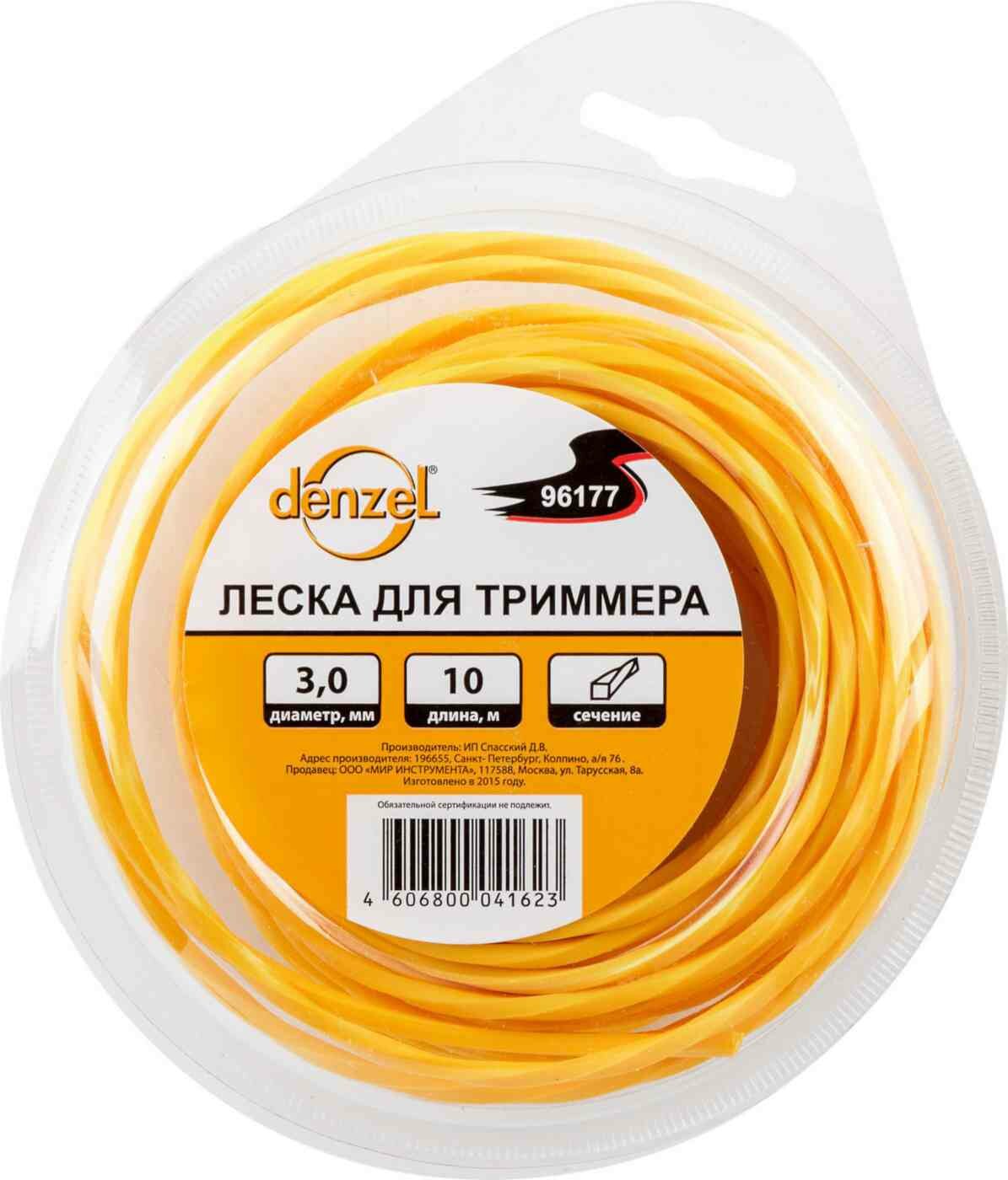 Леска для триммера DENZEL квадратная в блистере - это необходимая деталь для работы любого электрического триммера. Сочетание лески составляет 3,0 миллиметра, а длина - 10 метров.