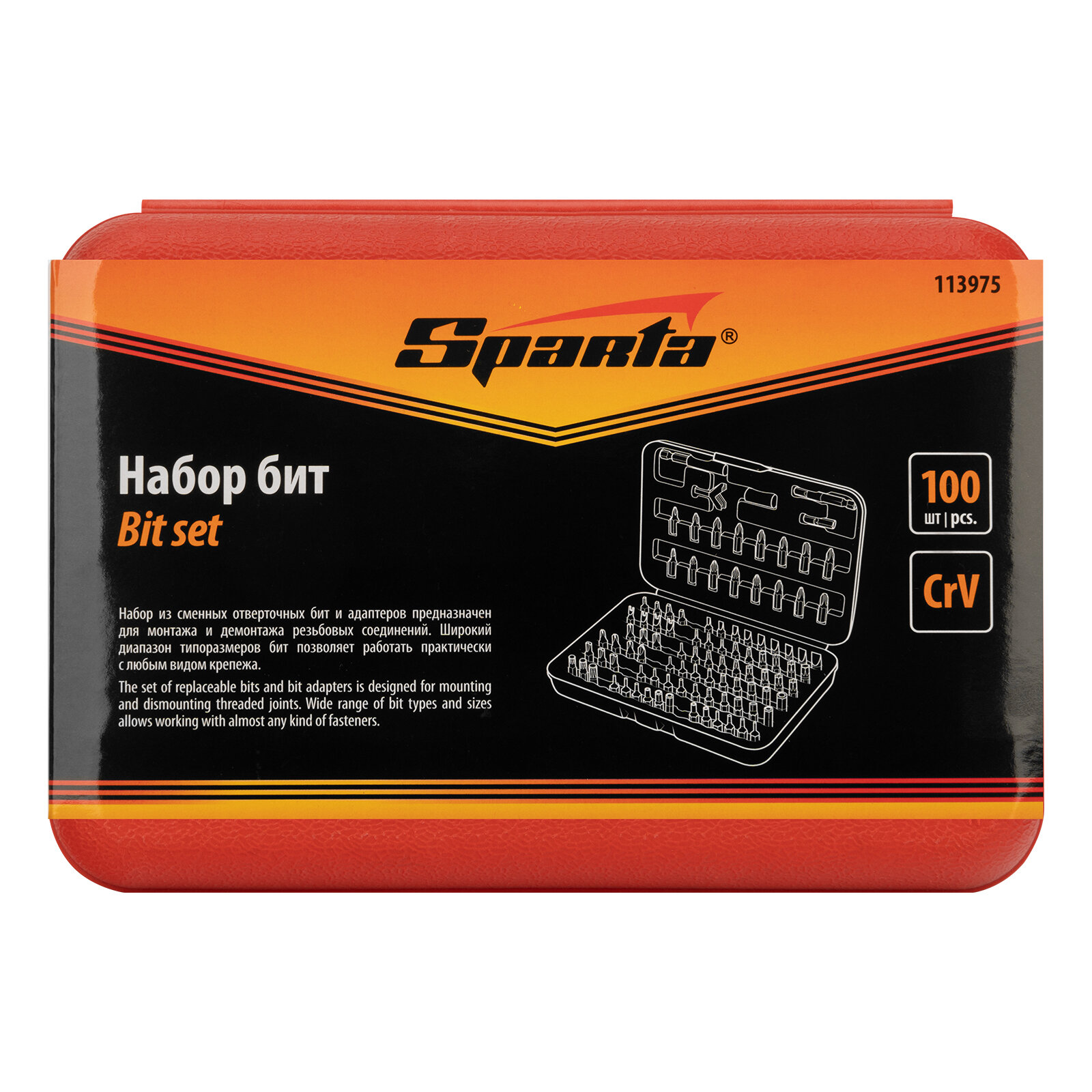 | Прочие особенности и свойства | Набор бит SPARTA 113975 адаптеры для бит crv 100предм. в пласт. боксе |