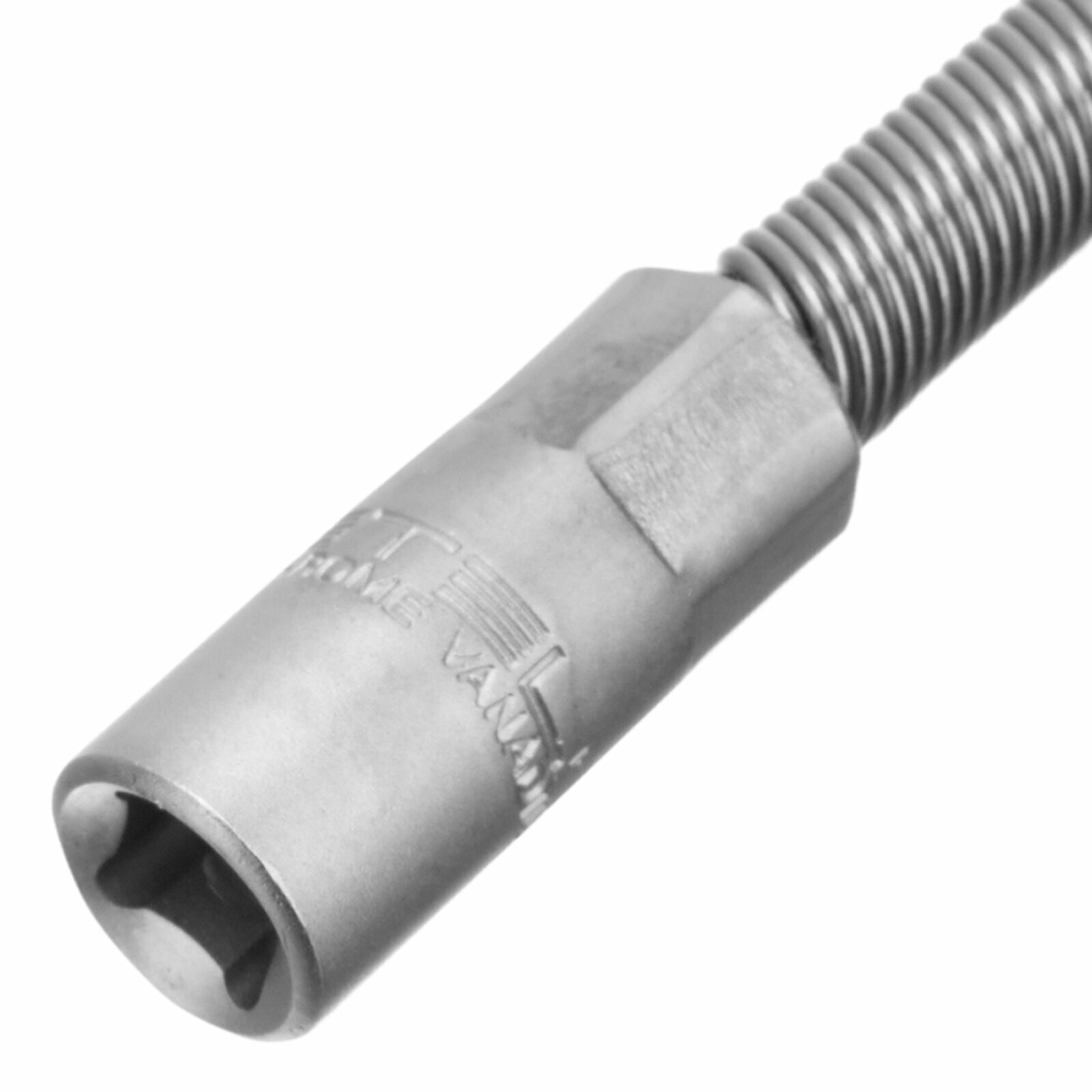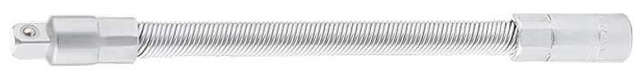 Гибкий удлинитель STELS используется для работы со съемными торцевыми головками, карданными шарнирами в труднодоступных местах. Изготовлен из хромованадиевой стали с матовым покрытием. Имеет посадочное место и присоединительный квадрат 1/4 с шариковым фиксатором.