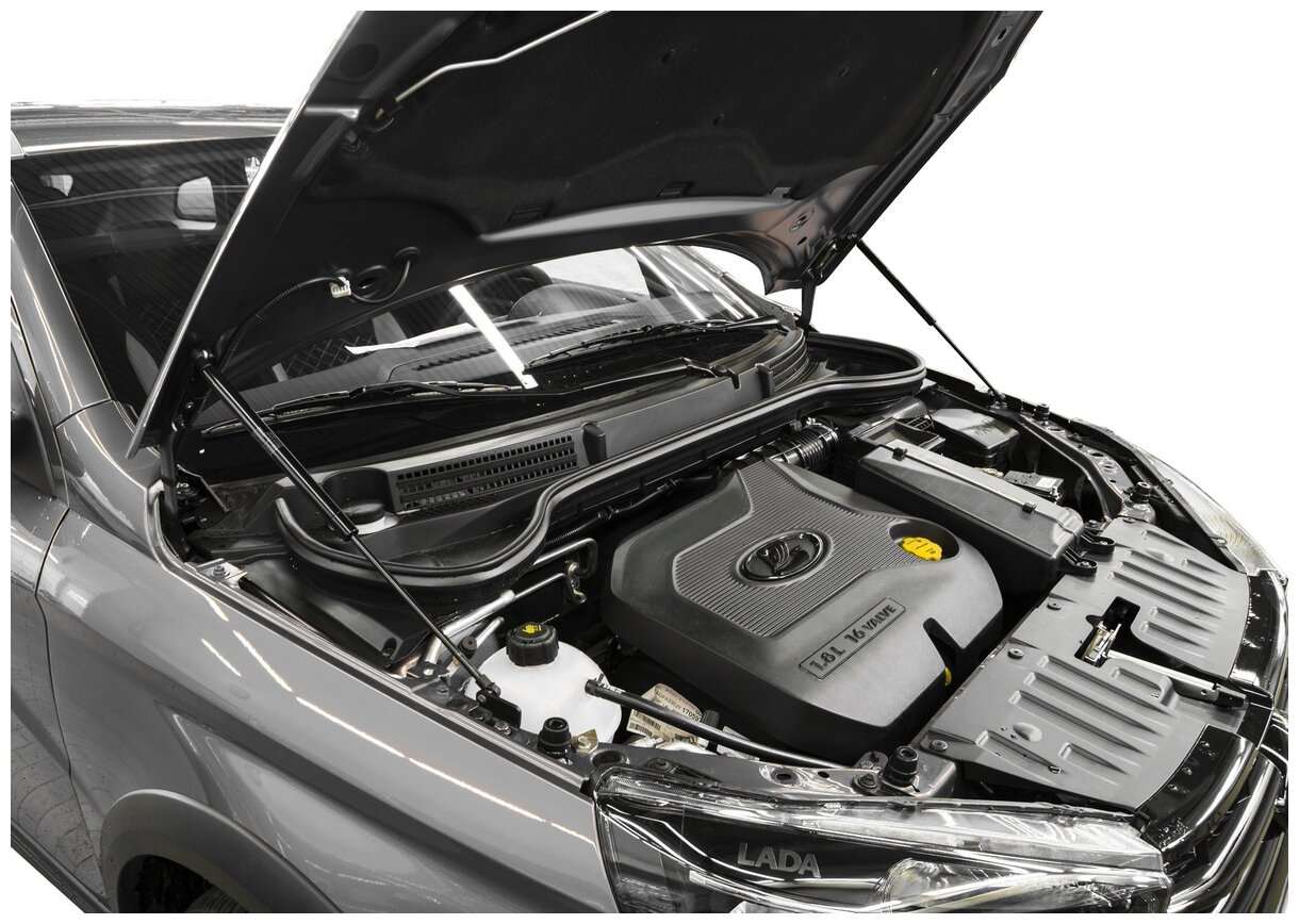 Газовые упоры капота позволяют легко открыть капот одним движением руки и автоматически зафиксировать его в верхнем положении.