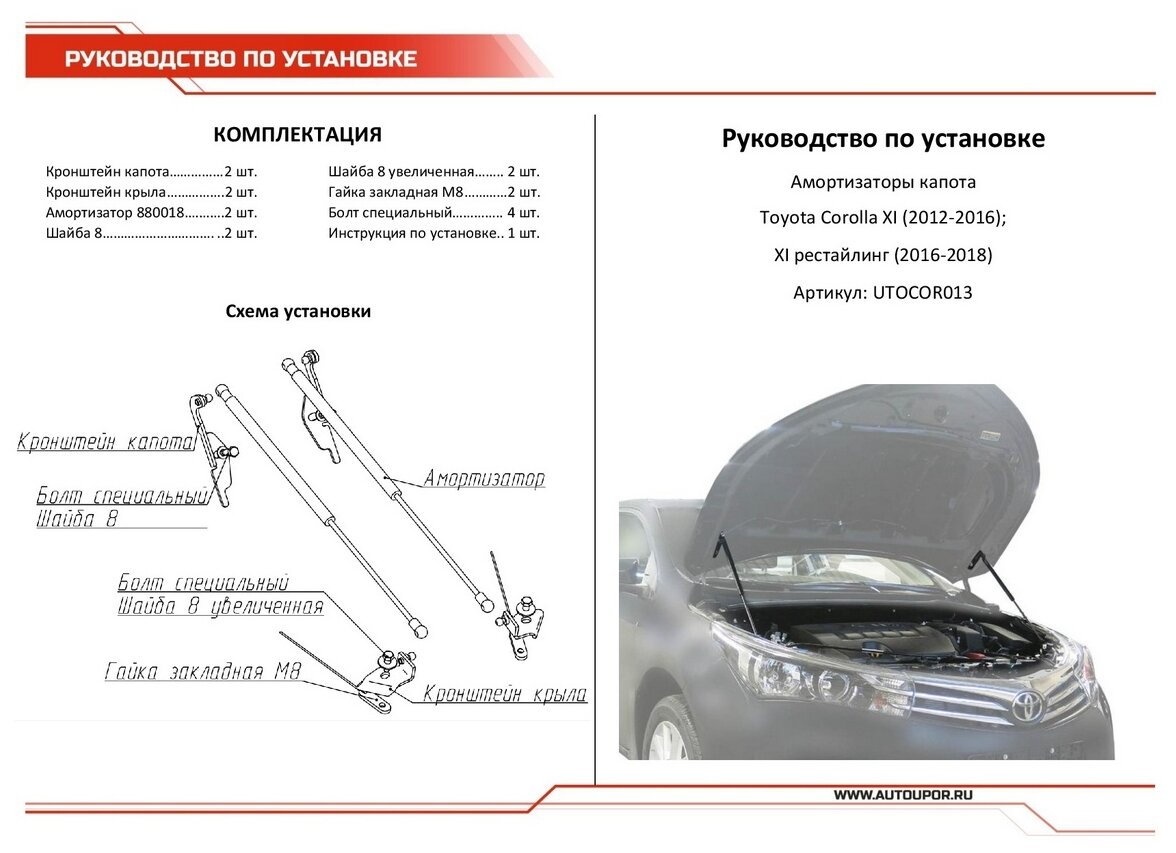 Сервис сравнения цен СкидкаГИД предлагает сравнить цены на товар «Упоры капота Автоупор Toyota Corolla V 2013- 2 шт. UTOCOR013»