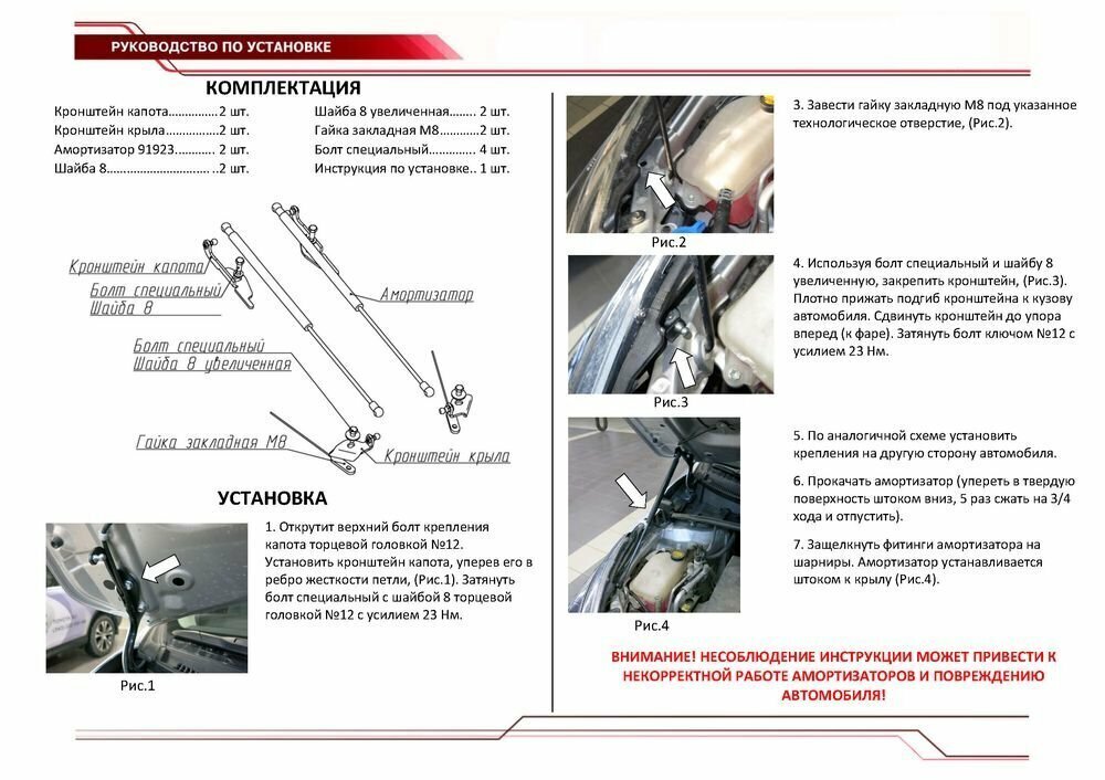 Обращаем Ваше внимание, что упоры капота имеют форму и комплектацию крепления, соответствующую модели данного автомобиля и могут отличать от фотографии карточки товара. Фото служит для визуального восприятия товара.