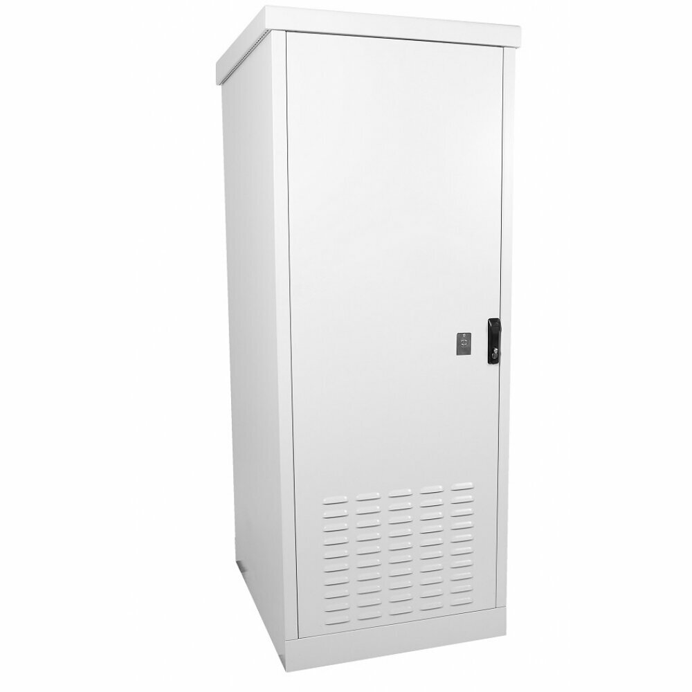 На дверь можно установить дополнительный антивандальный замок и полку для документов (в комплект поставки не входит). Вместо двери можно становить стенку (в комплект поставки не входит). Передняя дверь имеет жалюзи для обеспечения вентиляции. Крыша шкафа съёмная, имеет небольшой уклон и систему «антикапля», что не позволяет воде скапливаться на шкафу и отводит воду без попадания её на уплотнитель шкафа - дверь не примерзает в холодный период года. Под крышей имеются транспортировочные уши, которые позволяют поднимать шкаф на требуемую высоту либо транспортировать его с применением спец. устройств. Вместо стандартной крыши можно установить крышу с выдвижным козырьком (в комплект поставки не входит). Цоколь шкафа высотой 100мм, съёмный и может быть заменен на цоколь 300мм либо 600мм с окнами для доступа к проводам (в комплект поставки не входит). Фиксация шкафа к подготовленному основания осуществляется через 4 втулки М12 в основании шкафа.