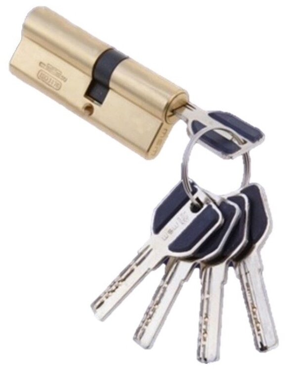 Латунный цилиндр (личинка, вставка) с 5-ю перфорированными ключами. В закрытом состоянии поводок отклонен на 30 градусов, что обеспечивает дополнительную защиту от выбивания. 7 пинов обеспечивают высокую секретность механизма. Ключи из латуни. Крепежный винт в цвет цилиндра.
