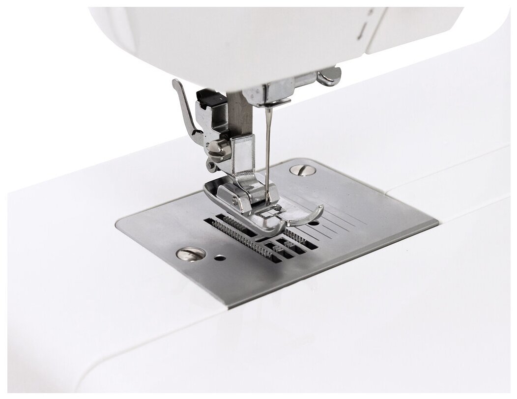 Машина оснащена самым необходимым при шитье набором строчек: прямая строчка, зиг-заг, 3-х шаговый зиг-заг, 2 потайных строчки для плотных тканей, потайная строчка для эластичных тканей, 3 декоративных строчки, а также 1 петля.