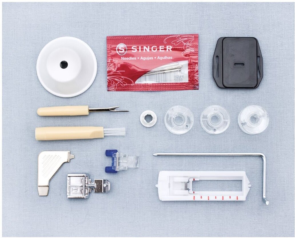 | Комплект поставки | Лапка универсальная; Лапка для молнии; Лапка для обметывания петли; Лапка для пришивания пуговиц; Вспарыватель; Шпульки; Комплект игл; Педаль; Масленка; Отвертка; Щетка-кисточка; Мягкий чехол; Направитель для квилтинга; Штопальная пластина; Инструкция |