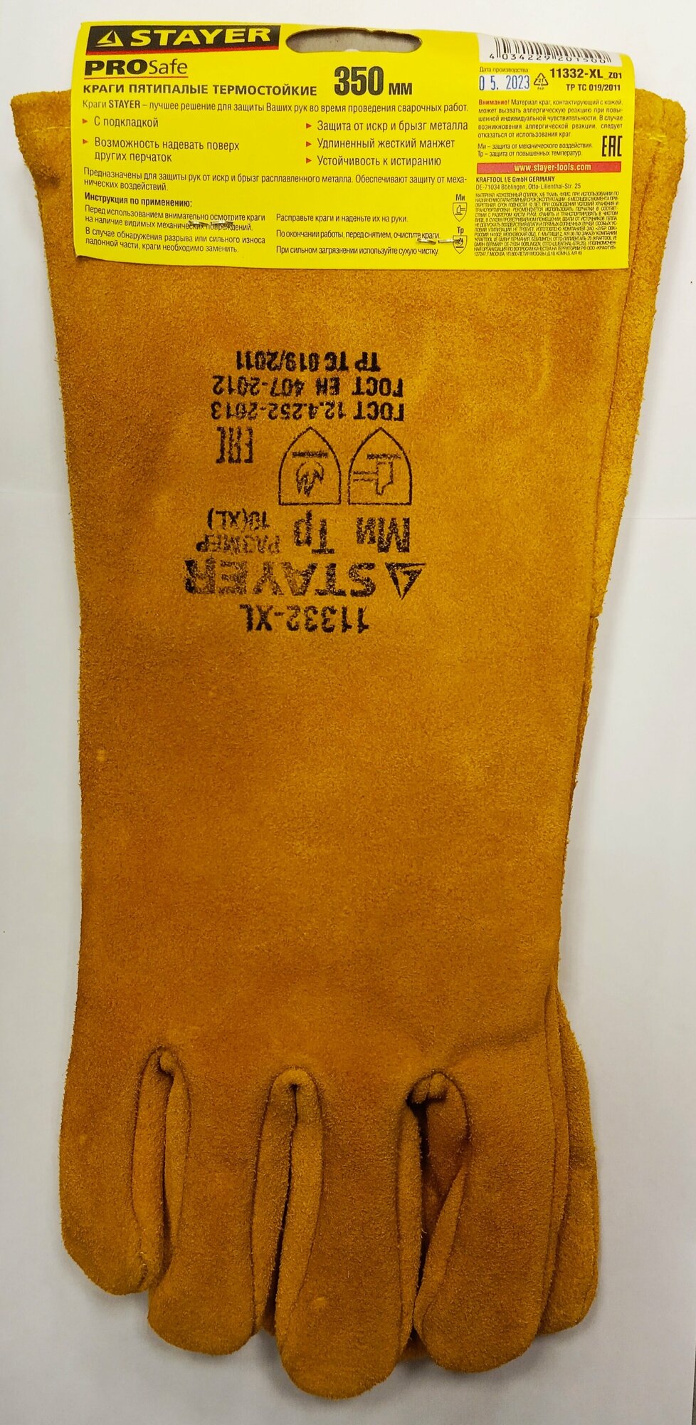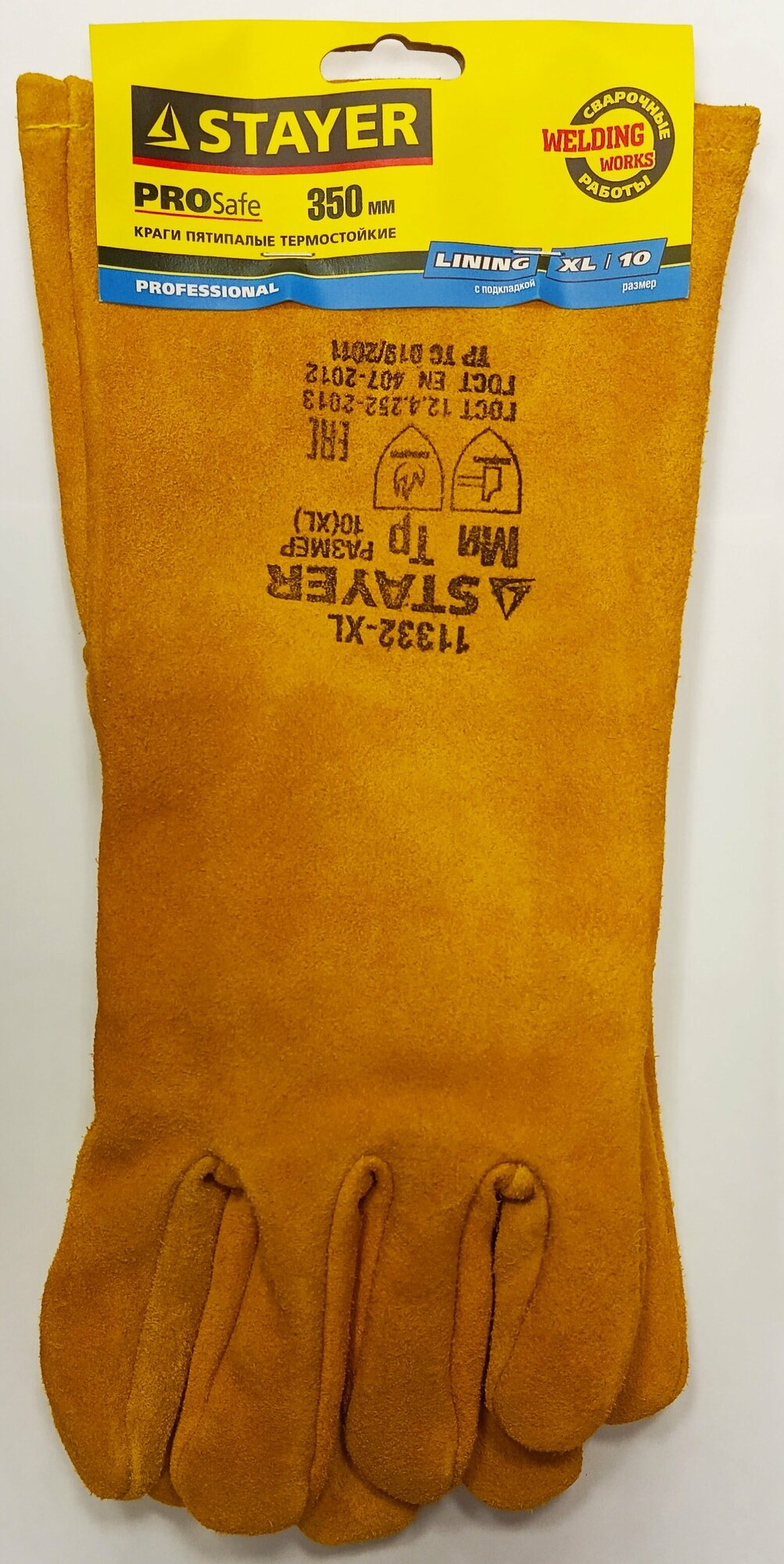 | Прочие особенности и свойства | Краги термостойкие profi с подкладкой для сварки 350мм Краги Stayer предназначены для защиты рук от искр и брызг расплавленного металла. Обеспечивают защиту от механических воздействий. |