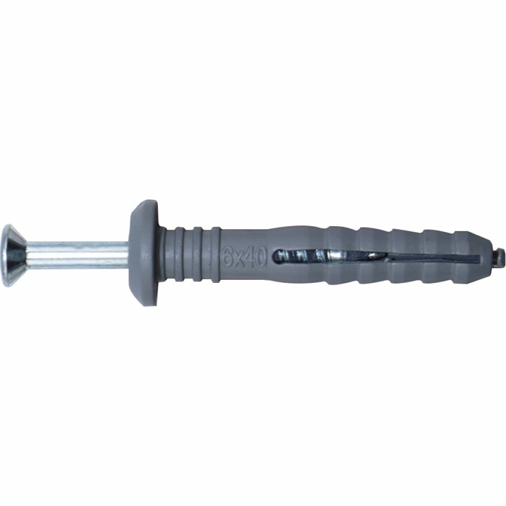 Состоит из двух элементов - специального гвоздя и непосредственно дюбеля. Применяется для монтажа предметов к бетону, кирпичу, камню, другим полнотелым плотным материалам. Главными преимуществами дюбель-гвоздей является простота монтажа, надежность крепления и привлекательная цена.