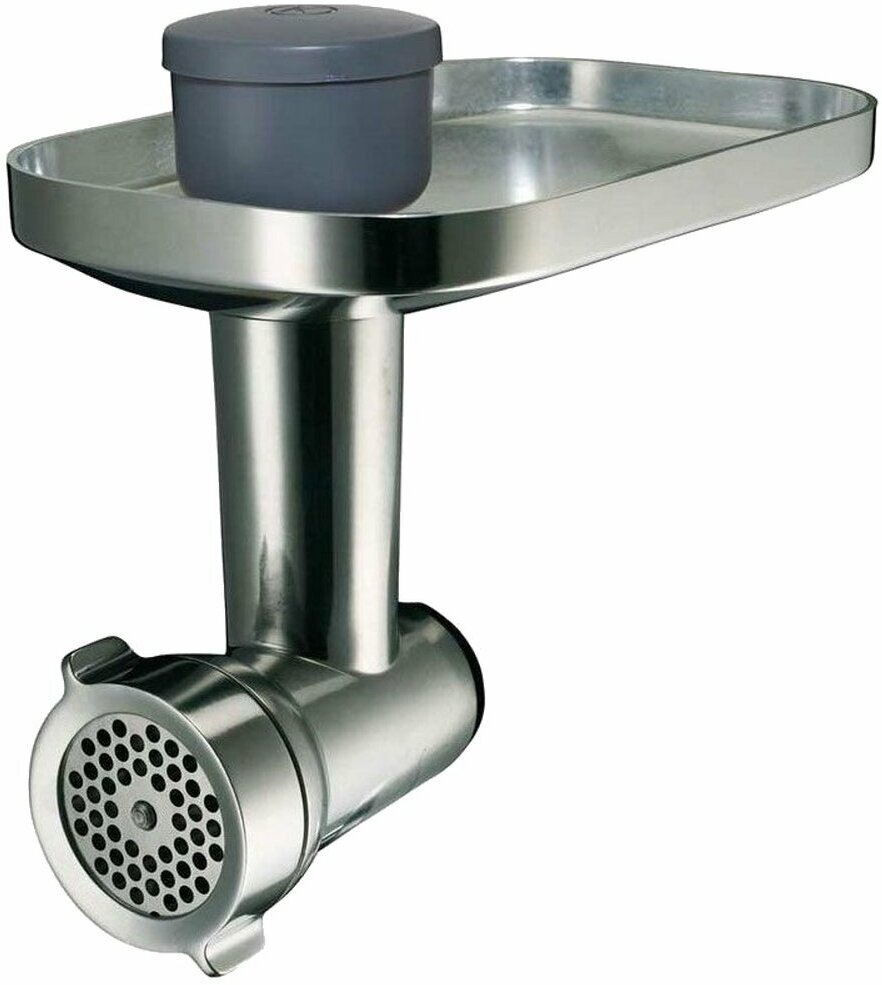 При помощи данной насадки вы сможете значительно разнообразить свой рацион всевозможными вкусными и питательными блюдами – котлетами, пельменями, пирогами и лепешками с мясом, тефтелями запеканками, фаршированными овощами, рулетами, также сможете готовить супы с фрикадельками. Обработка мяса займет у вас всего лишь несколько минут, вы просто загружаете продукты в соответствующее отверстие насадки, а ваша кухонная машина делает хлопотную и трудоемкую работу по измельчению за вас.