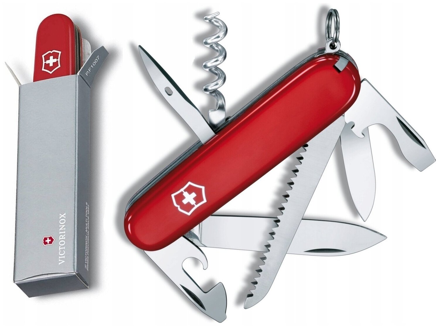 Швейцарский Victorinox Camper () - армейские ножи, 91 мм, нож содержит более десяти функций и является хорошим помощников во многих добрых делах в дороге, в туристическом походе, в офисе, дома. Этот нож действительно настоящее украшение и вполне претендует своим безупречным видом на сувенирную вещь. Целый набор мультиинструментов делает его уникальным и универсальным в употреблении. Кроме двух лезвий, нож несет в своей конструкции штопор, открывалку, шило, кернер, зубочистку, пилку по дереву и так далее.