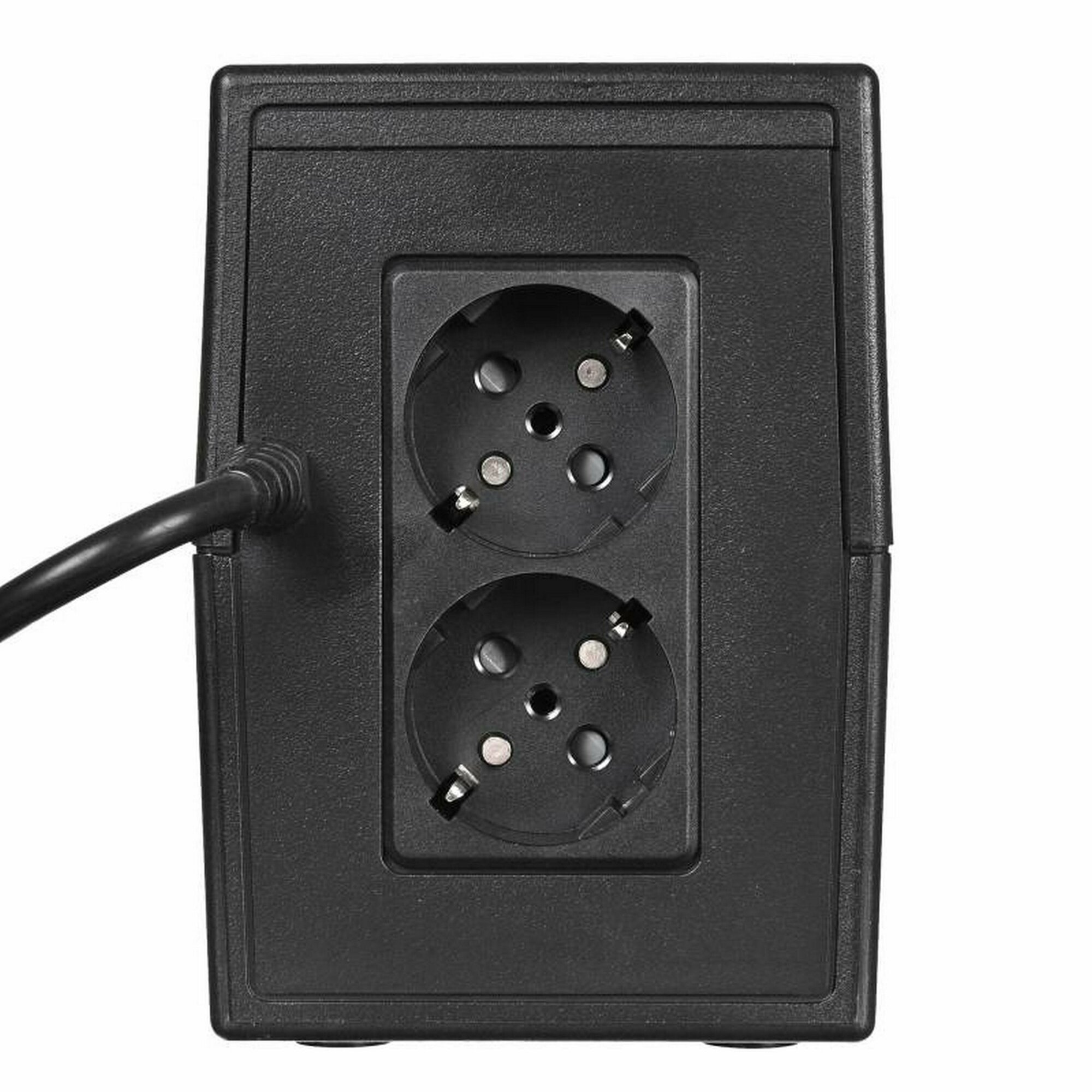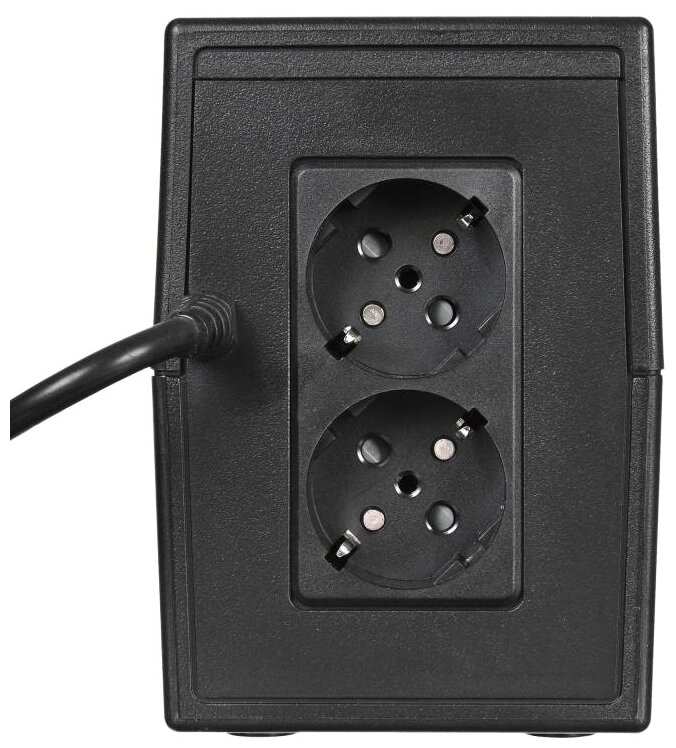 Полная мощность ИБП составляет 850 ВА. Для подключения устройств предусмотрены две розетки типа Schuko CEE 7. Форма напряжения модифицированная синусоида. Установлена необслуживаемая герметичная свинцово-кислотная аккумуляторная батарея 12В/9Ач.