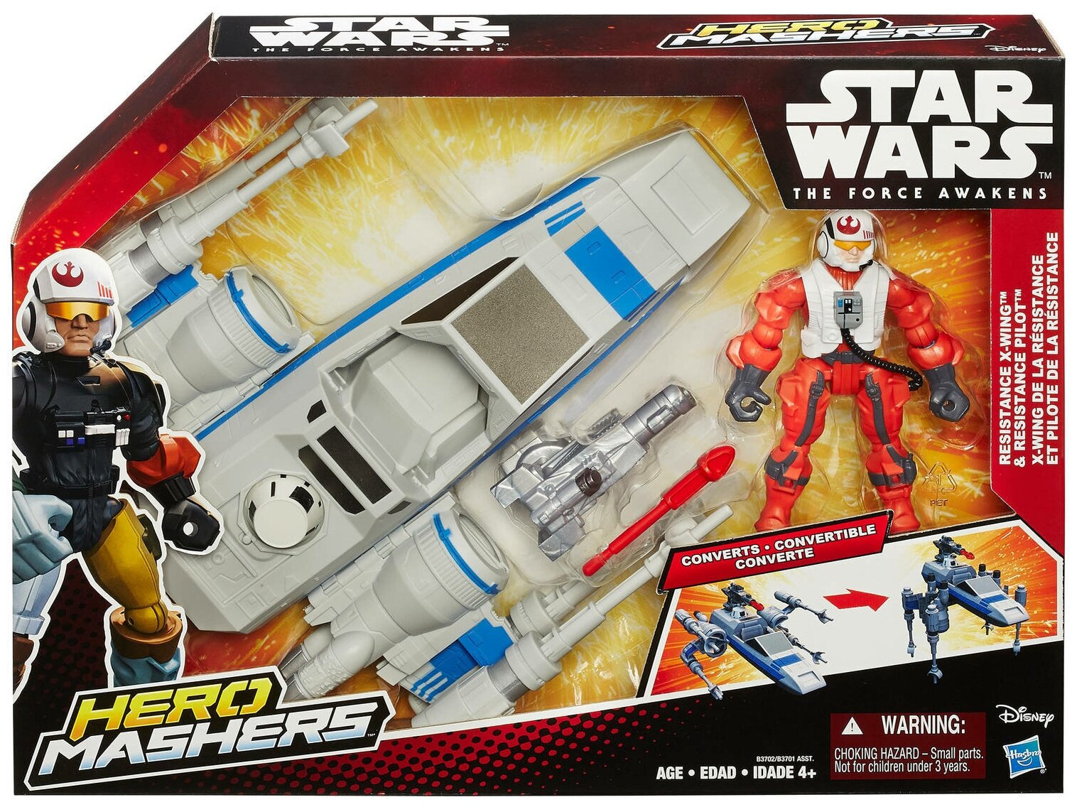 Комплект включает в себя уникальную игрушку-трансформер и фигурку пилота. С помощью несложных манипуляций, межгалактический летательный аппарат преобразуется в планетарный вездеход! Фигурки совместимы со всем оружием и аксессуарами из линейки игрушек Star Wars Hero Mashers от Хасбро.