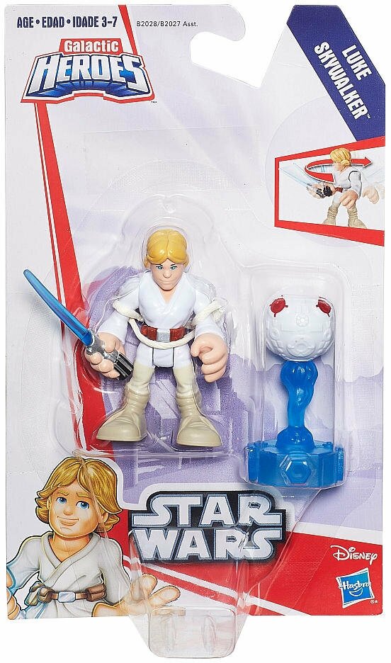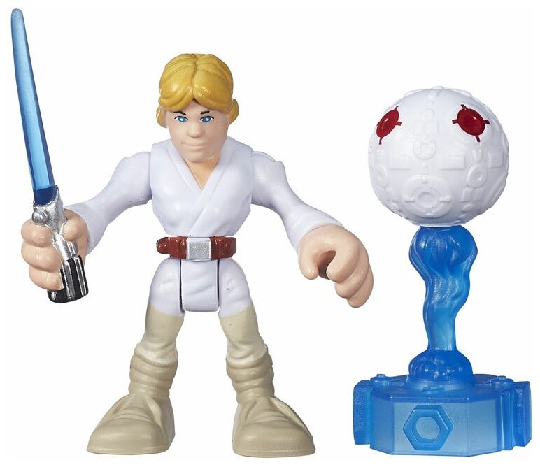 Эти фигурки станут отличным подарком для самых юных поклонников Звездных Войн! Они разработаны специально для малышей - их удобно держать в маленьких ручках, отсутствуют мелкие детали. Игровые наборы Playskool Star Wars покажут, как тренируются джедаи или ситхи, оттачивая мастерство владения световым мечом. В комплект с фигуркой входит тренировочный модуль на подставке. У Люка это круглый белый дрон, а у Вейдера - уменьшенная копия Звезды Смерти. Корпус фигурки поворачивается, нанося удар и возвращаясь в исходное положение. Эта функция осуществляется за счет пружины, расположенной внутри игрушки. Руки и ноги фигурок, также, подвижны.