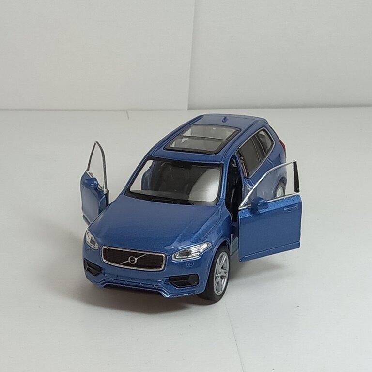 Компания Welly (Велли) выпустила модель автомобиля Volvo XC90. Машинка спроектирована в масштабе 1:34-39. Она обладает инерционным механизмом колес, что делает игру с ней очень динамичной.