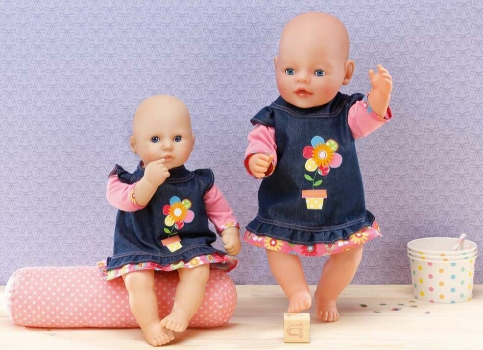 Одежда Zapf Creation my mini Baby born предназначена для кукол Бэби Борн высотой 30-36 см. Короткое джинсовое платье с розовыми текстильными рукавами понравится каждой девочке, оно выглядит очень стильно и эффектно. На груди изображен яркий, разноцветный цветок в горшке. Платье сшито из высококачественных материалов, швы тщательно обработаны. В нем модница-кукла будет выглядеть просто очаровательно, радуя видом свою хозяйку!