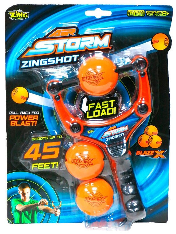 Игровой набор – рогатка с тремя шариками-снарядами Zing в комплекте – придется по вкусу любому мальчишке, который любит подвижные игры в «войнушки» и стрельбу. Модель рогатки 2016 года была усовершенствована по сравнению с предыдущими версиями, она стала еще удобнее в использовании и позволяет запускать шарики на расстояние до 15 метров!