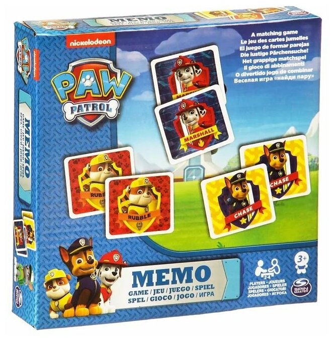 Настольная игра Щенячий патруль Мемори состоит из 48 карточек с изображениями персонажей популярного мультфильма Щенячий патруль. Это щенята-спасатели по имени Гончик, Зума, Маршал, Скай, Рокки и Крепыш.
