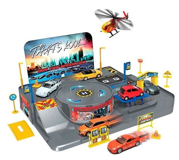 Модель: 96010 Велли Игровой набор Гараж, включает 3 машины и вертолет