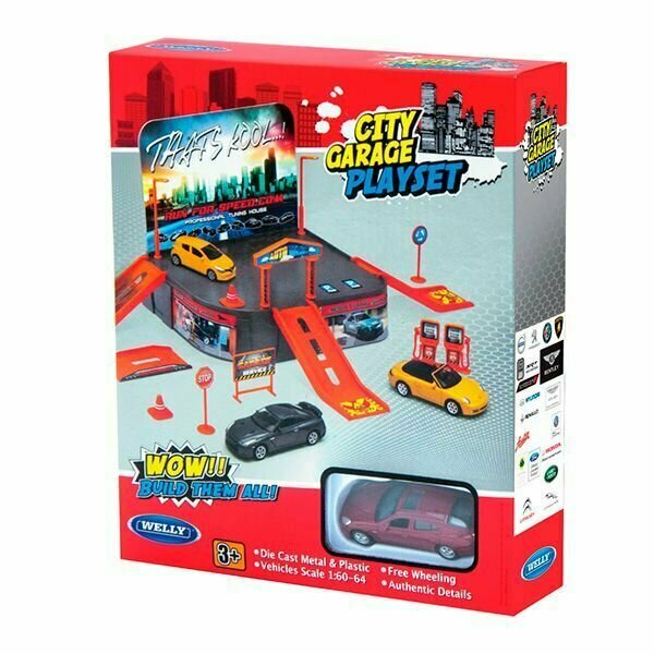 Машинка Welly 96020 Велли Игровой набор Гараж, включает 1 машину