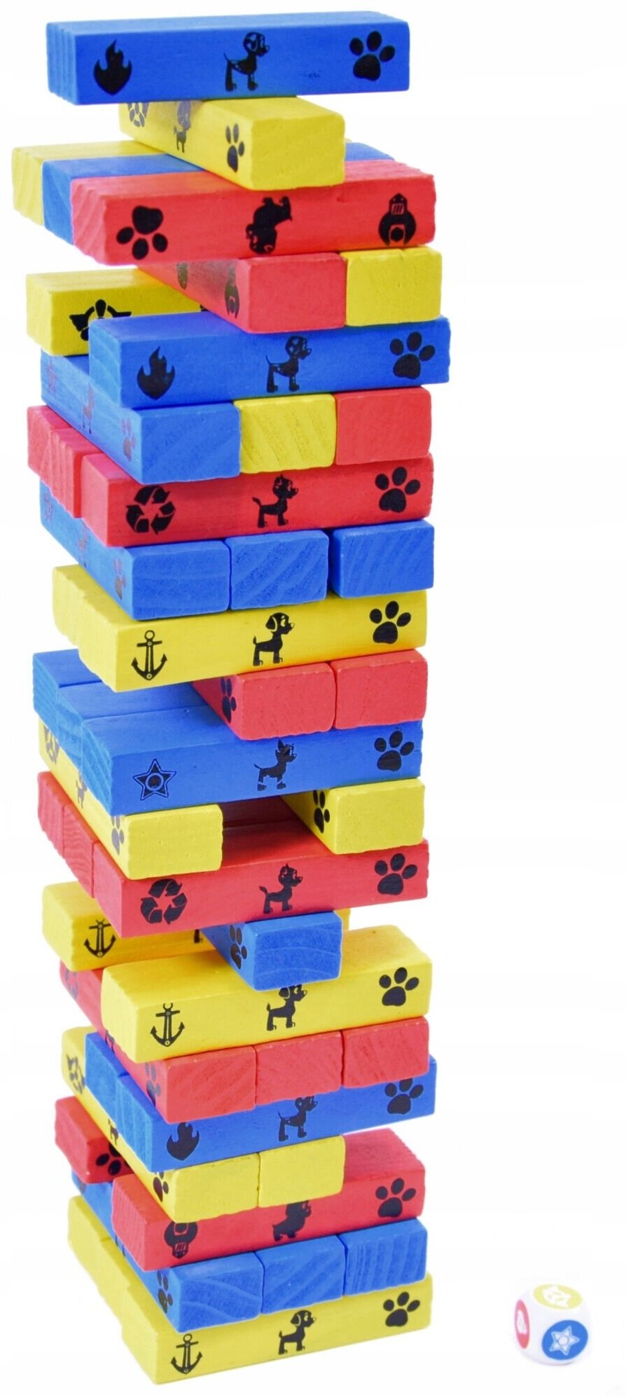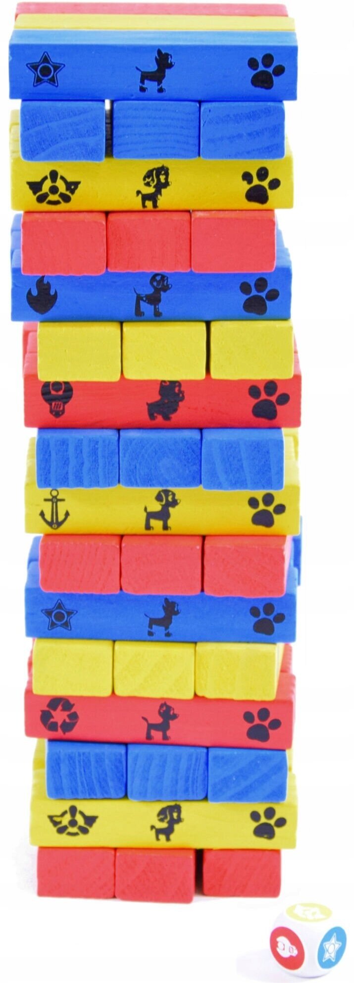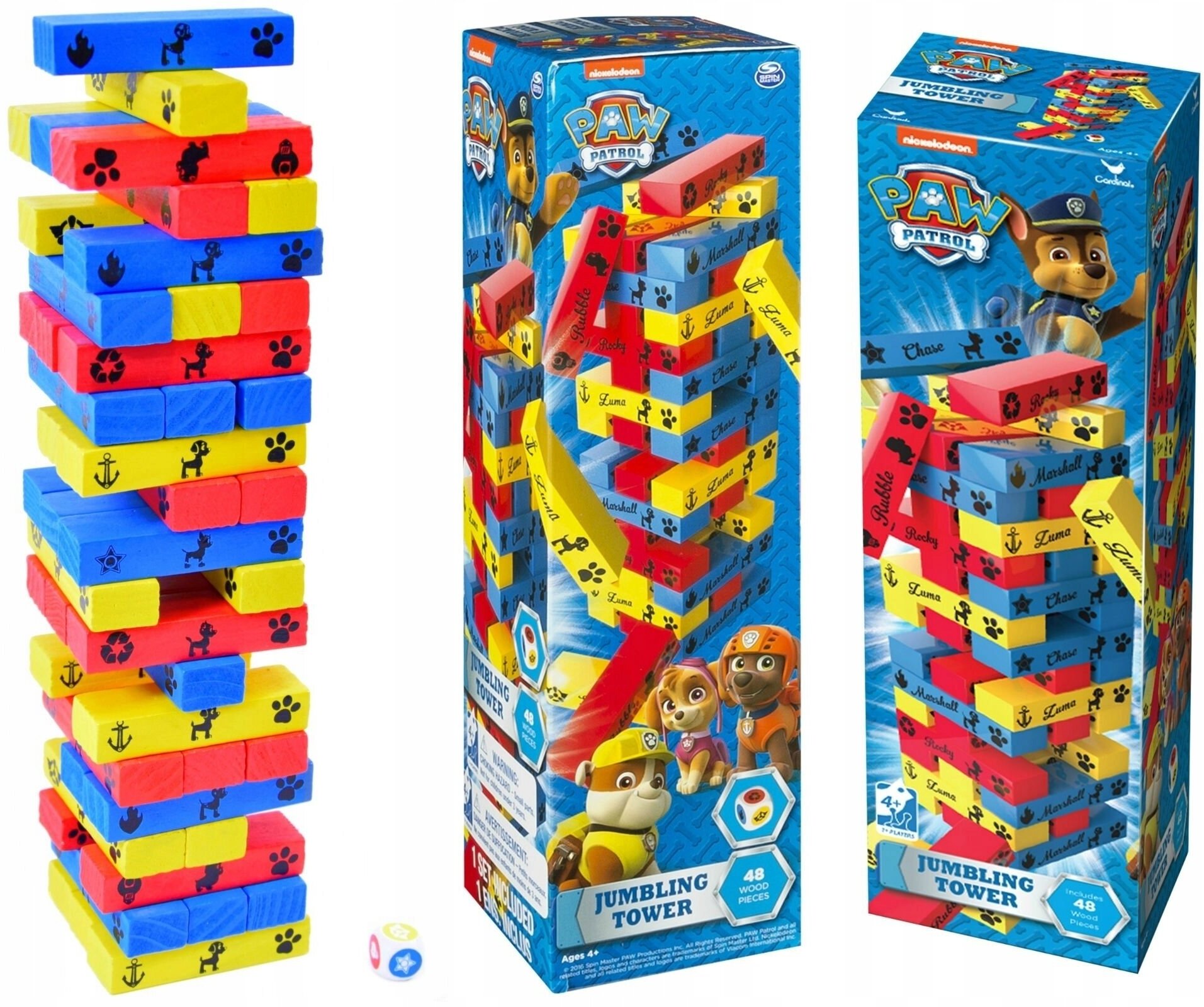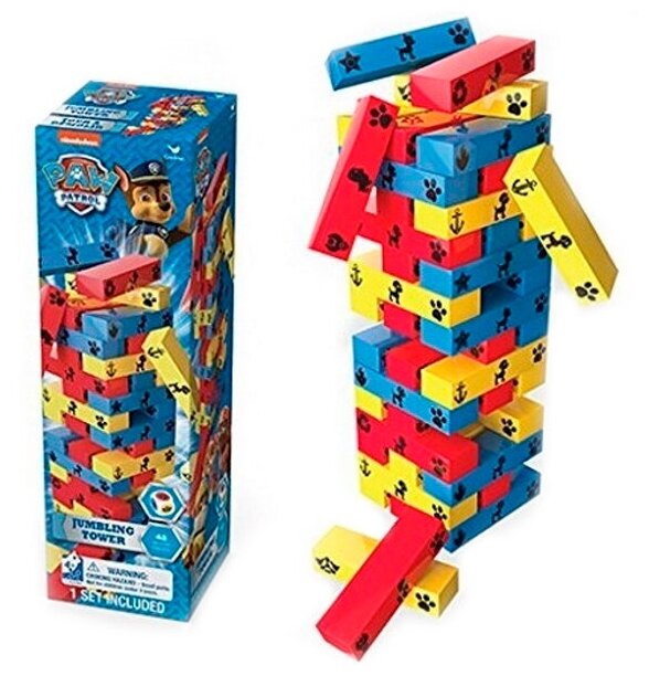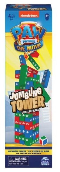Набор состоит из 48 деревянных брусочков и кубика. Игроки должны по очереди бросать кубик и вытаскивать снизу или из середины башни брусочек выпавшего цвета, а затем перемещать его наверх. Синий цвет обозначает Маршала (далматинец, пожарный), красный – Рокки (дворняжка, эколог), жёлтый – Зуму (лабрадор, водный спасатель). Проигрывает тот, кто уронит башню.