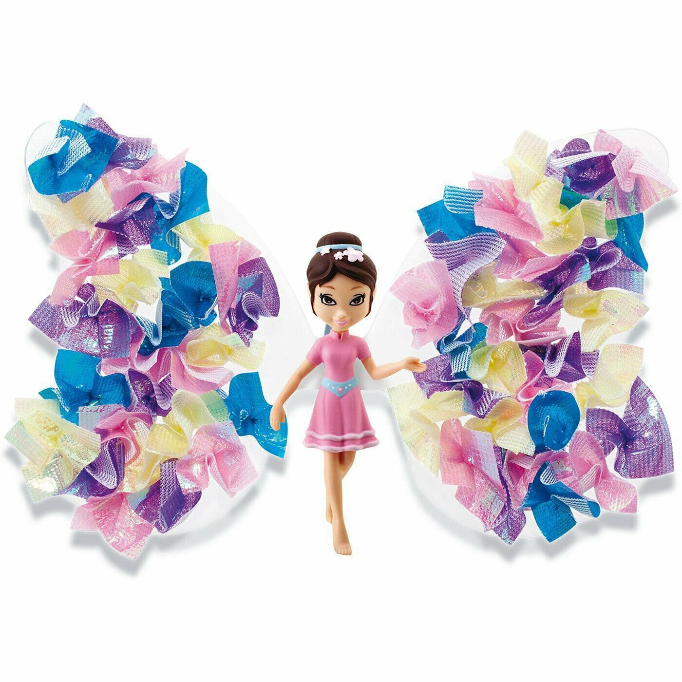 Укрась крылья Букетика и ее питомца с помощью специального инструмента и кусочков разноцветной блестящей ткани. Включи воображение и расположи их, как тебе нравится. Создай свою уникальную феечку! А после поиграй с ней и другими куклами.