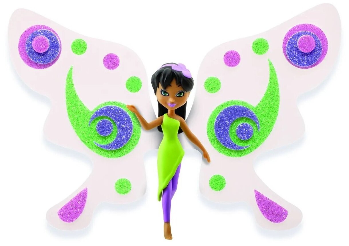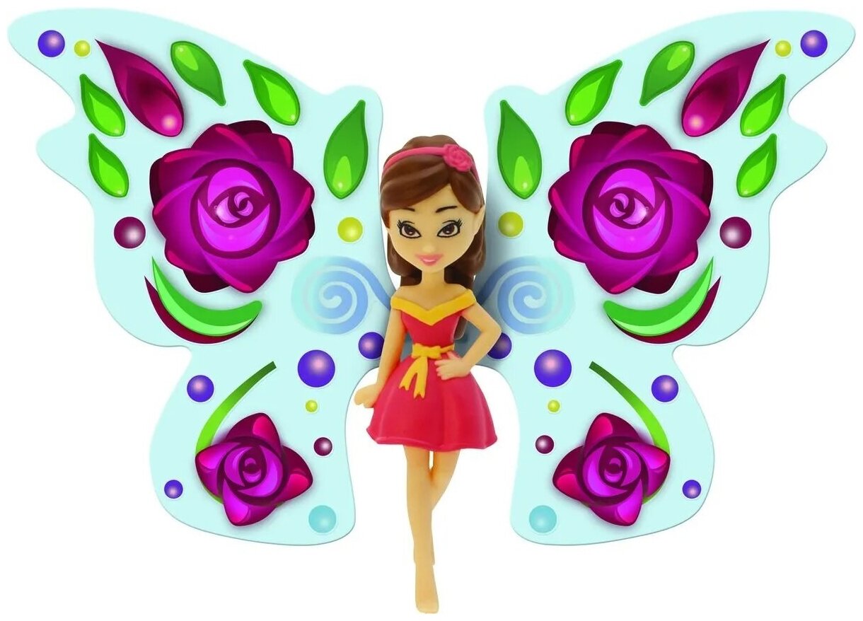 | Комплектация | фея, подставка для феи, крылья феи, 2 листа блестящих наклеек, 1 лист со стразами, питомец, крылья для питомца, инструкция |