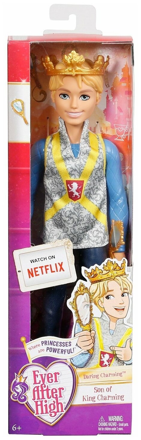Дэринг Чарминг - сын короля Чарминга, мечта каждой ученицы школы Долго и Счастливо, настоящий похититель девчачьих сердец! Он - самый прекрасный принц в школе, мужественный и храбрый, однако очень зацикленный на собственной внешности и самовлюбленный. У него ослепительная улыбка и невероятно красивые, выразительные глаза. Дэринг - прирожденный лидер, и он по праву считается самым крутым парнем в школе. Кукла в точности копирует персонажа из мультфильма "Долго и счастливо".