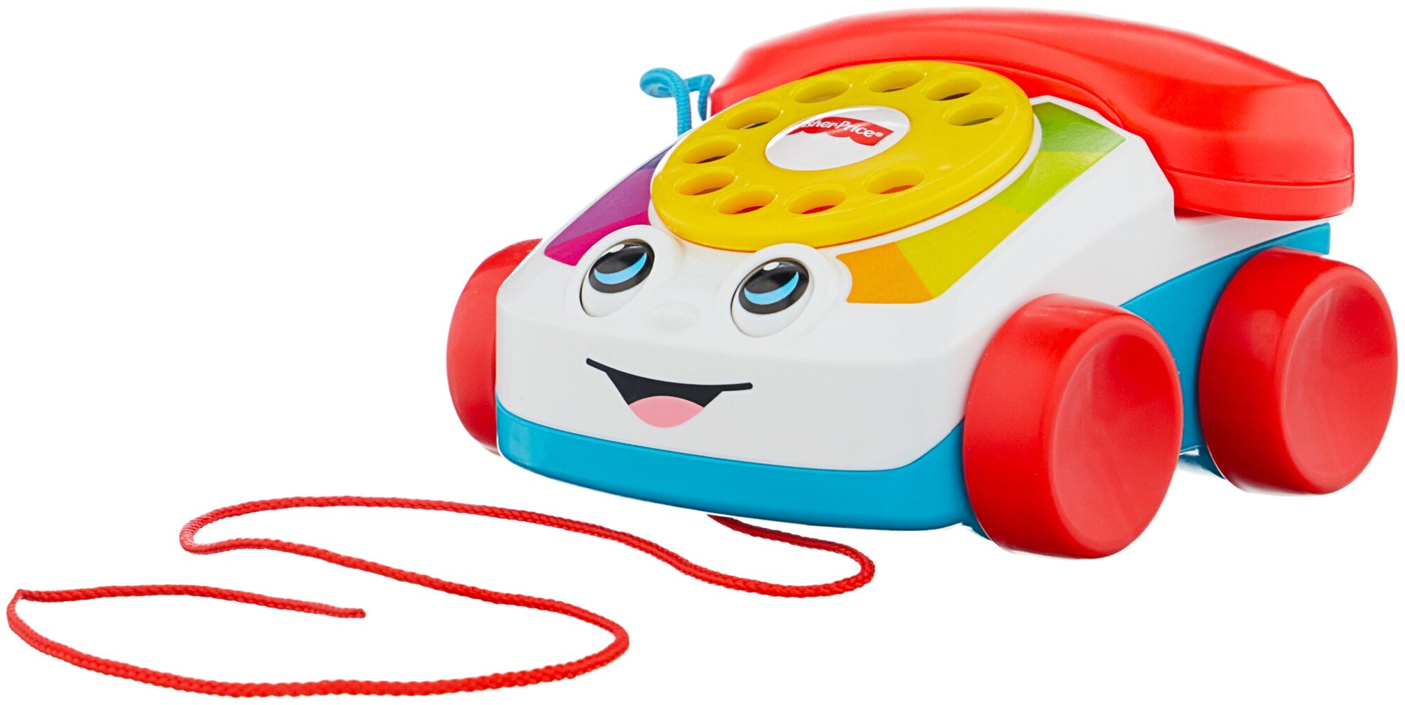 У Говорящего телефона на колесах от Fisher-Price очаровательная мордочка! С ним малыш сможет поиграть, как будто он говорит по телефону. Крутящийся диск для набора номера научит его цифрам и разовьет мелкую моторику. Когда малыш будет катать игрушку, он будет развивать крупную моторику, а у самого телефона будут весело двигаться глазки.